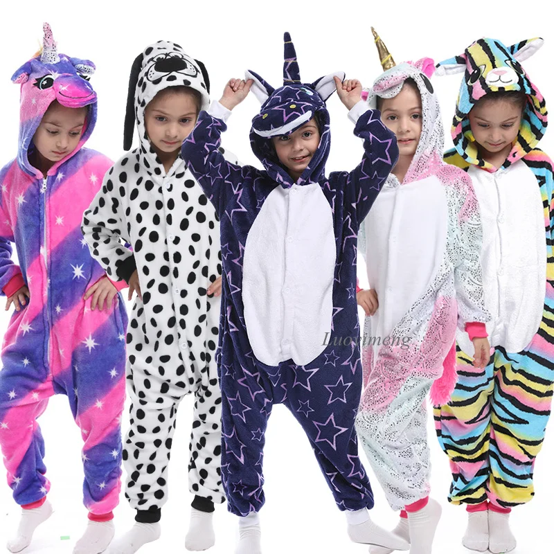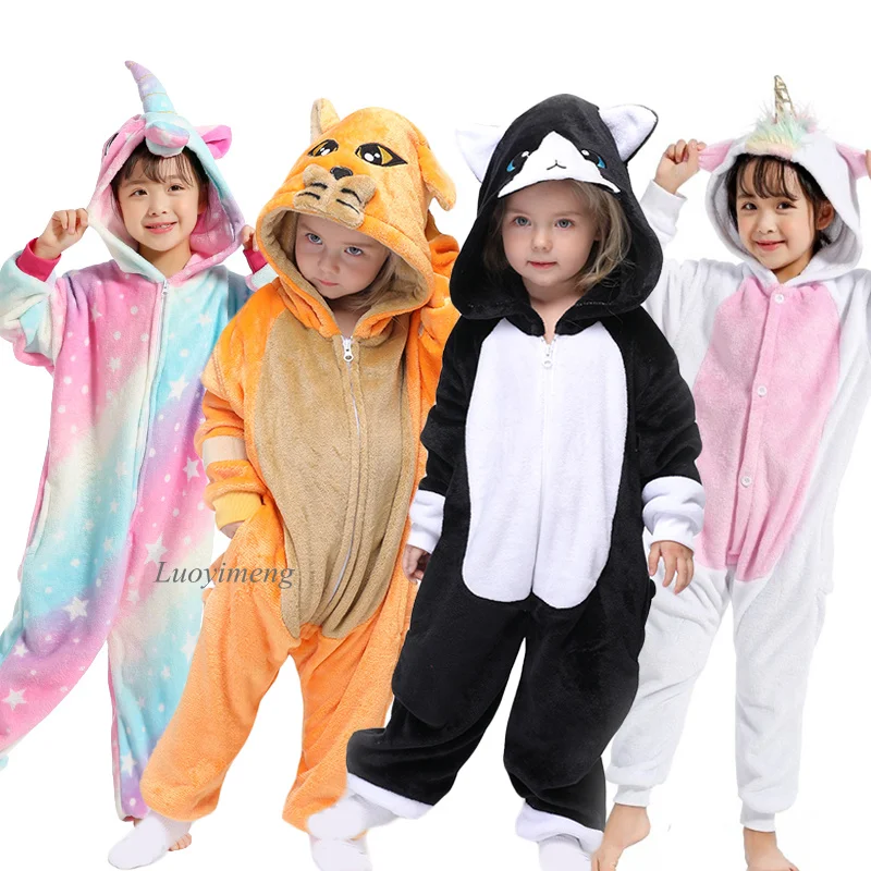Единорог пижамы для детей с принтами животных; Комплект пижамы для девочек Kigurumi Стич панда костюм для детей на зиму; Теплая одежда для сна для мальчиков; Ползунки для девочек