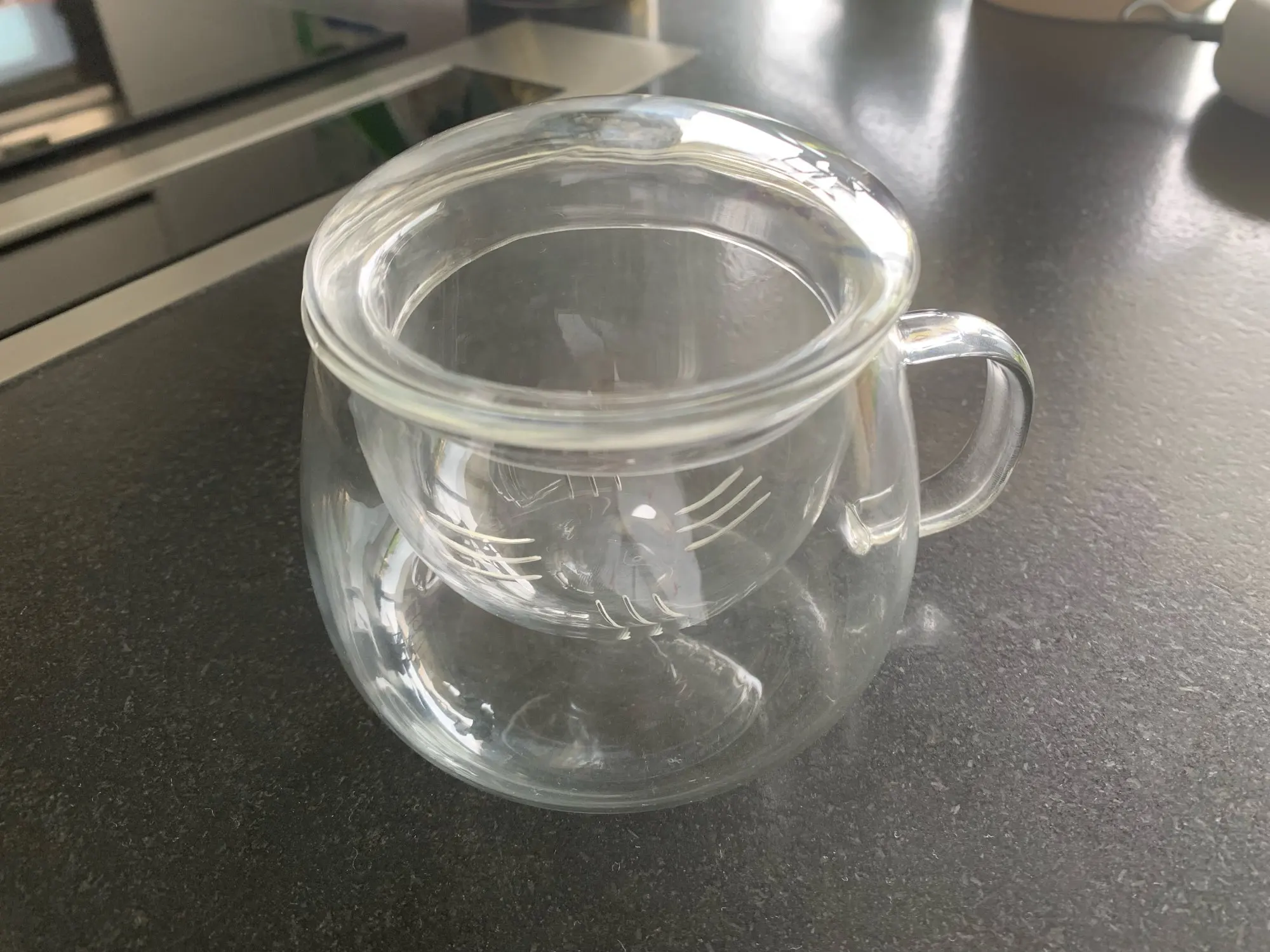 Мне очень жаль, потому что топ на чашке сломался. Когда я открывал упаковку, там были чашки и фильтр, но сверху были только маленькие стеклянные кусочки. Я думал, что это была проблема с логистикой, или, возможно, упаковка. Или все вместе.