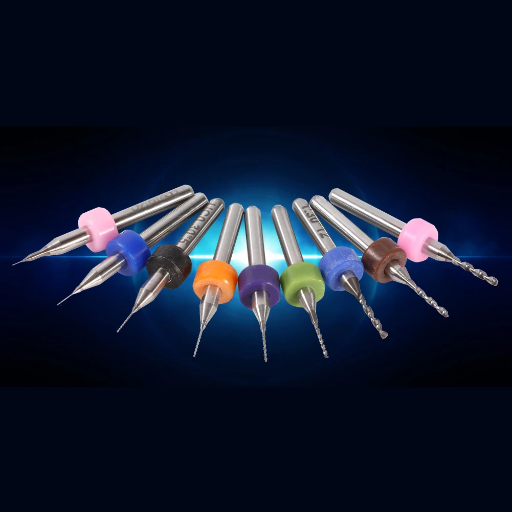 Печатная печатная плата Карбид Микро-сверла, инструмент набор 0,1/0,2/0,3/0,4/0,5/0,7/1,2/1,3/1,4 мм