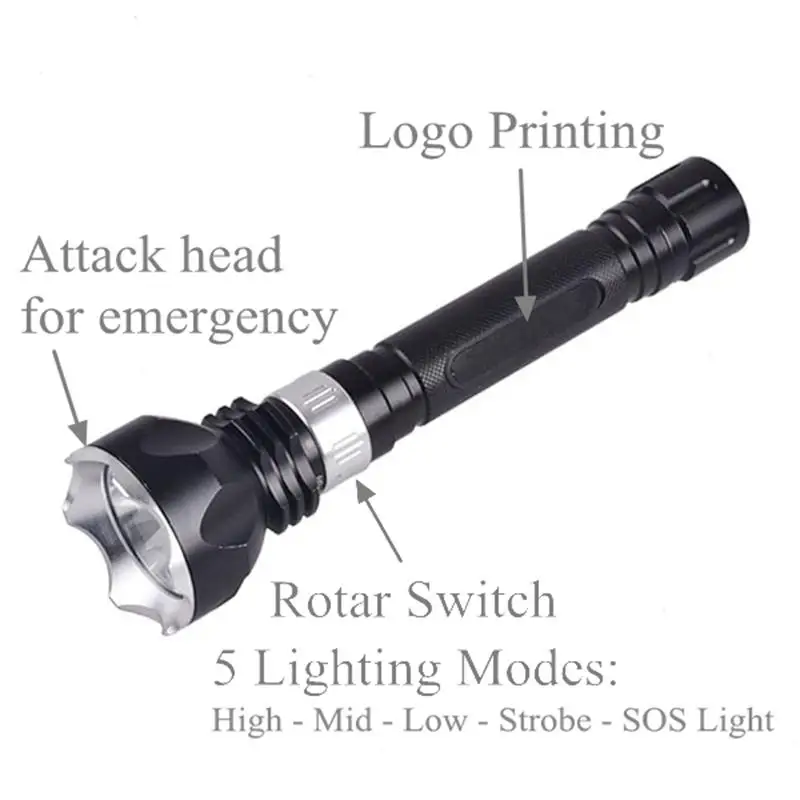 Поворотный переключатель посередине 5 режимов: высокий-средний-низкий-стробоскоп-sos