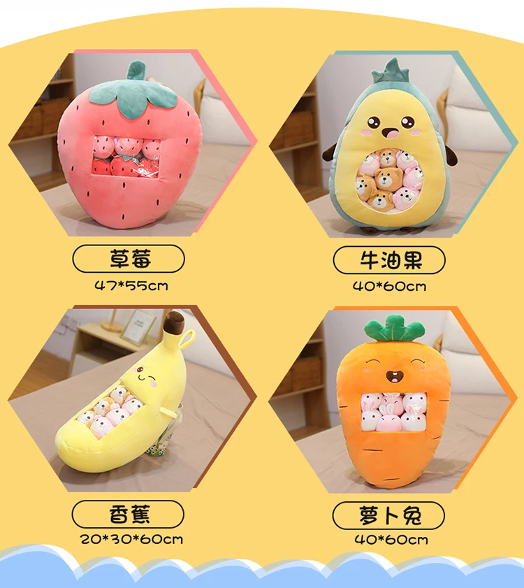 Сумка из 8 штук, мини-кукла в игрушке авокадо, подушка с набивкой фруктов, клубники, морковки, банана, подушка с милыми животными, игрушки в
