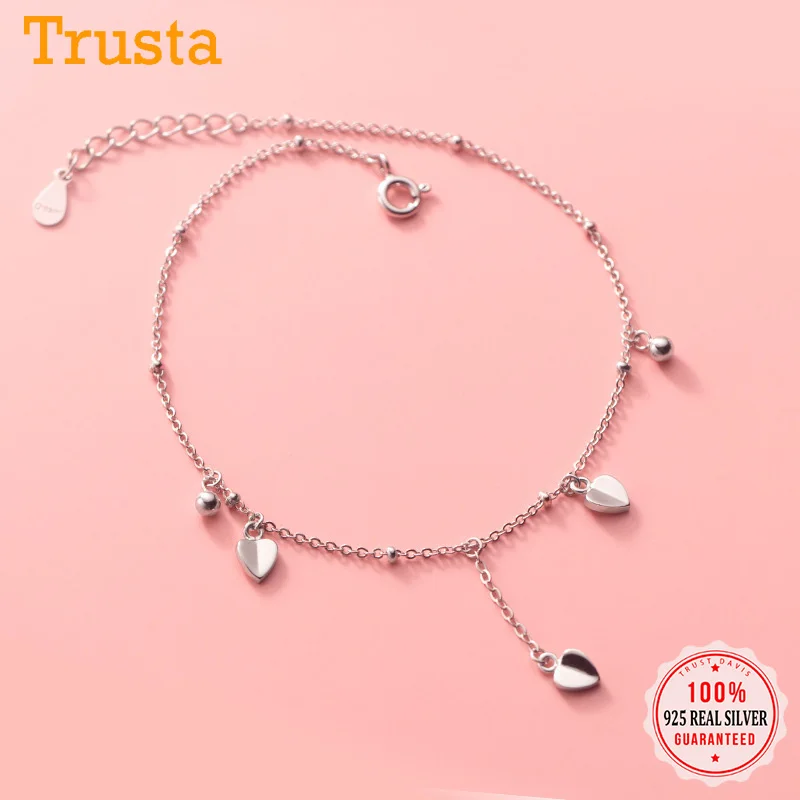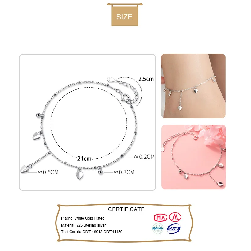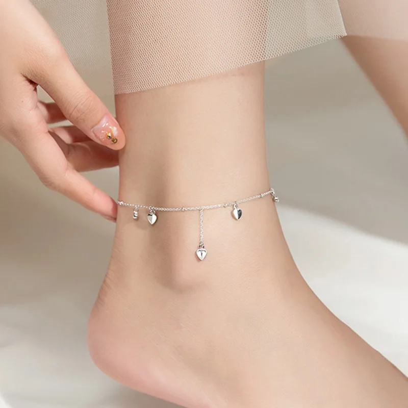 Женский браслет на ногу из серебра 925 пробы с бусинами и кисточками
