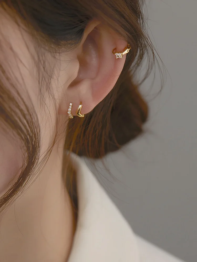Модные серьги из стерлингового серебра 925 пробы с цирконом V-образной формы, цветочное ушное кольцо, милое маленькое дикое темпераментное женское ушное украшение