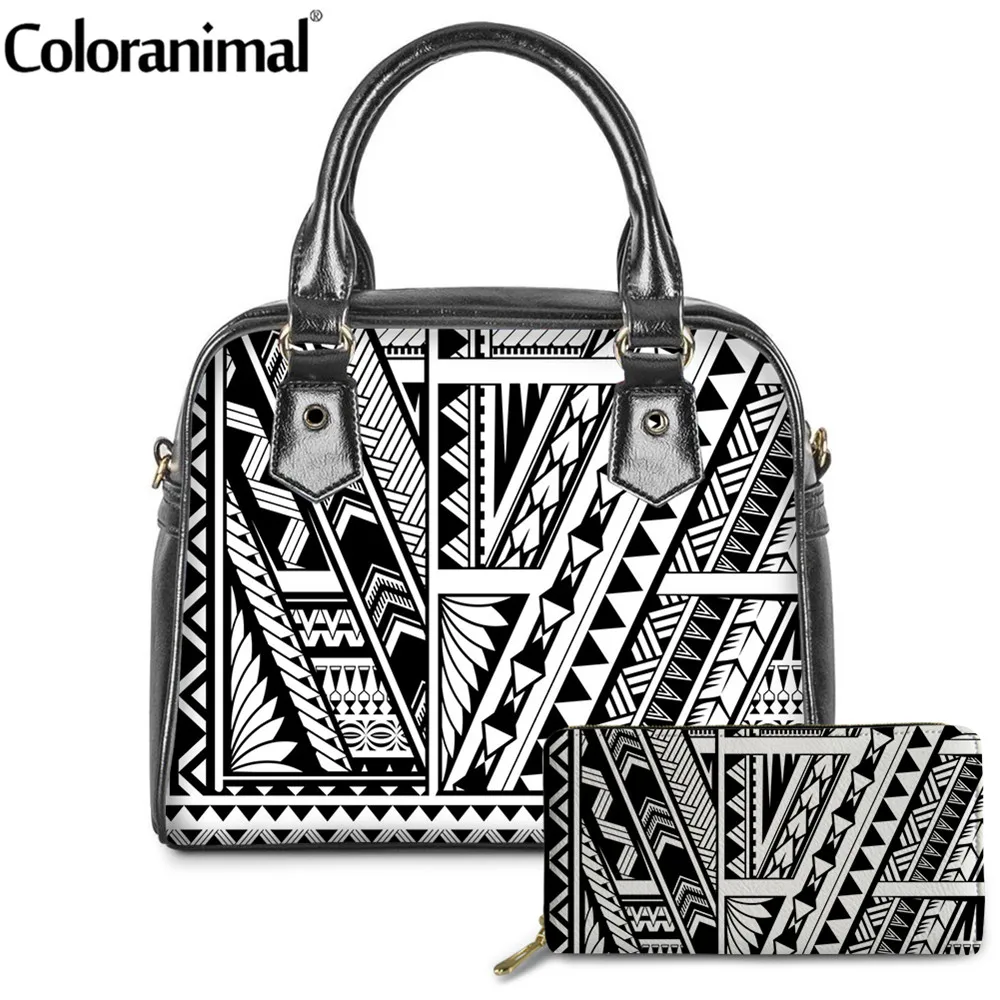 Модные женские Сумки из искусственной кожи Coloranimal 2 шт.компл., брендовые сумки через плечо в полинезийском стиле с этническим татуировкой для женщин