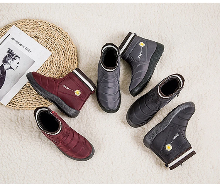 Водонепроницаемые зимние ботинки, женская теплая плюшевая зимняя обувь, женские ботинки, Зимние ботильоны для женщин, Нескользящие женские ботинки