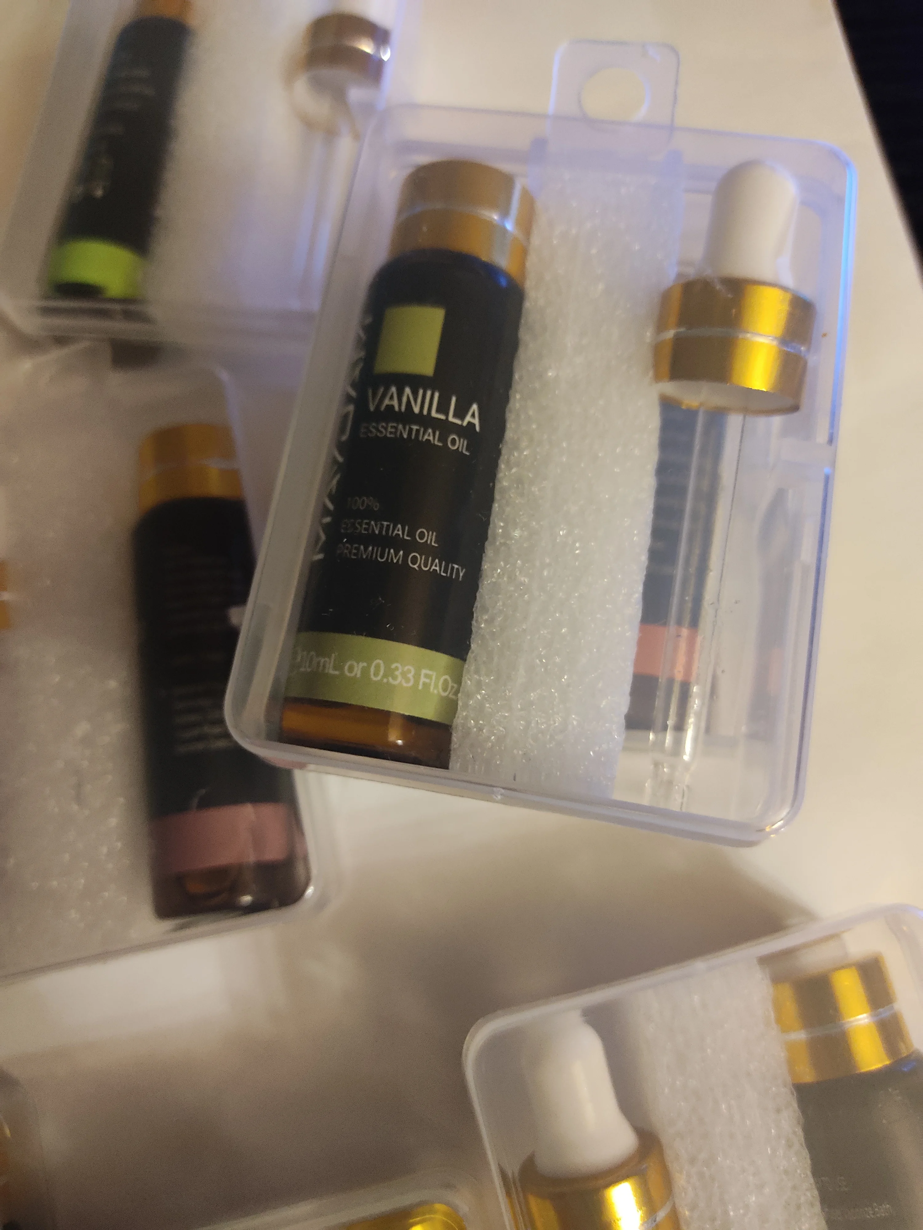 Товар прибыл в указанные сроки доставки Хорошая упаковка. Все получили в хорошей форме. Я попробовал белую бумагу с моим эфирным маслом розмарина. Он полностью испарился примерно за 6 часов. Я думаю, что это немного долго, но это был мой первый раз, когда я покупал эфирное масло, поэтому я не знаю, сколько времени потребуется для испарения масла розмарина. На данный момент я 'м вполне доволен этим продуктом.