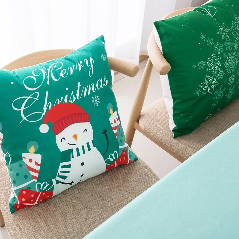 Рождественский чехол для подушки с рисунком Санта-Клауса, снеговика...