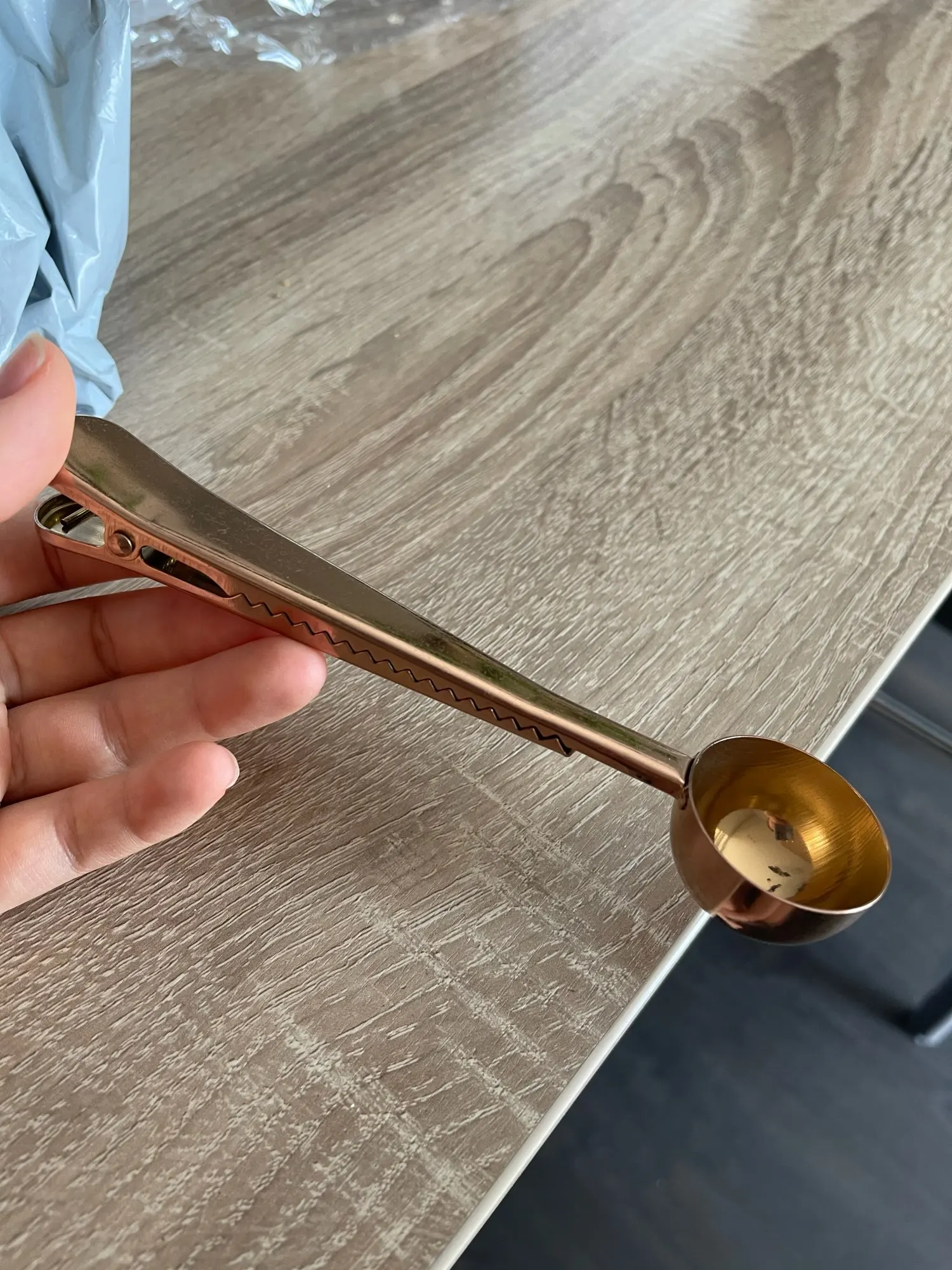 Среднее качество . поцарапанная ложка и не тугой зажим