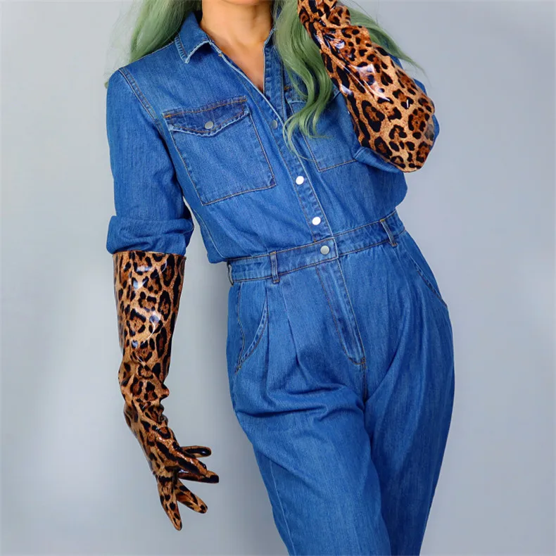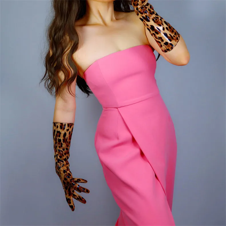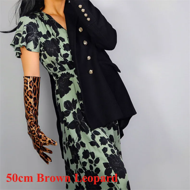 Леопардовые очень длинные перчатки 70 см тонкие женские из искусственной кожи яркие лакированные кожаные леопардовые женские кожаные перчатки WPU286