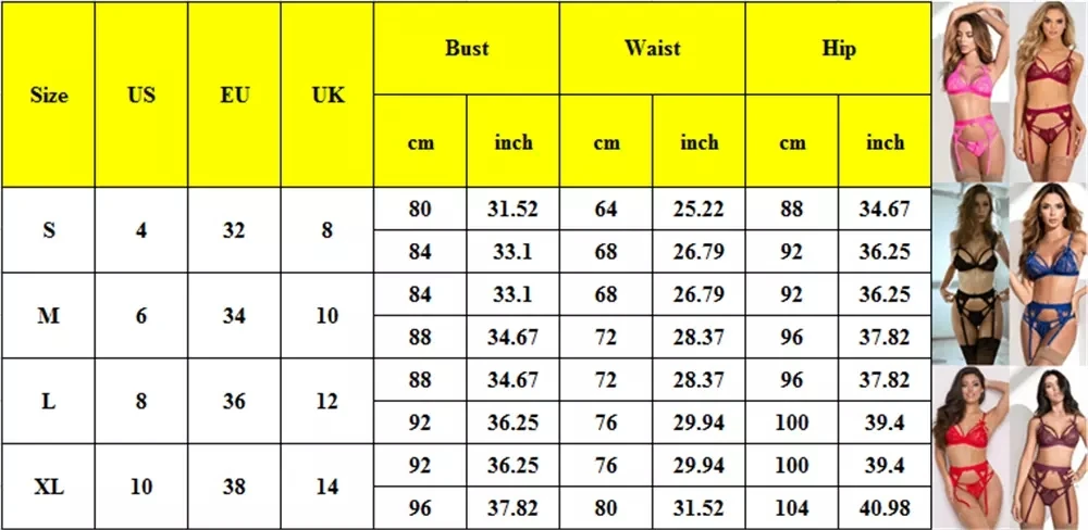Все было S, но трусики входили в L, сердечки были просто дырками, и очень различный дизайн задней части трусиков и бюстгальтеров: только один ремешок.