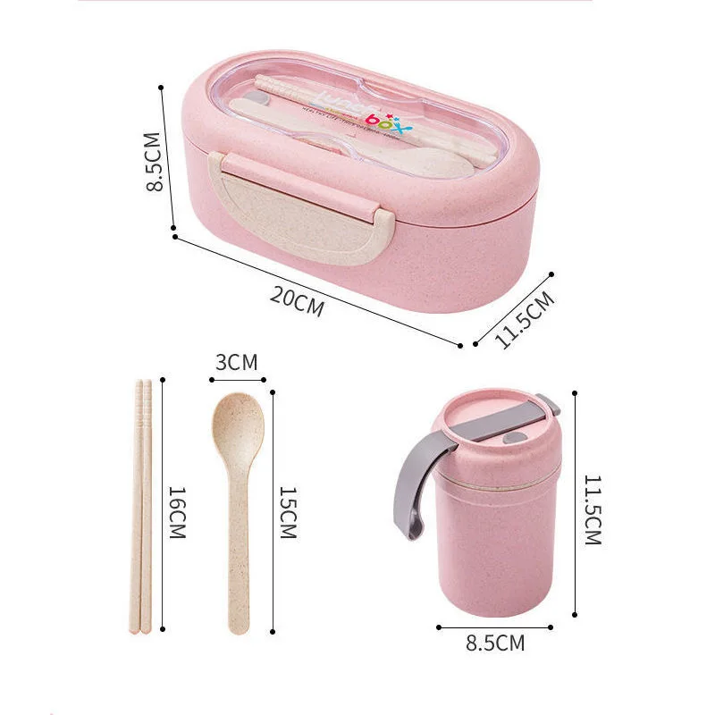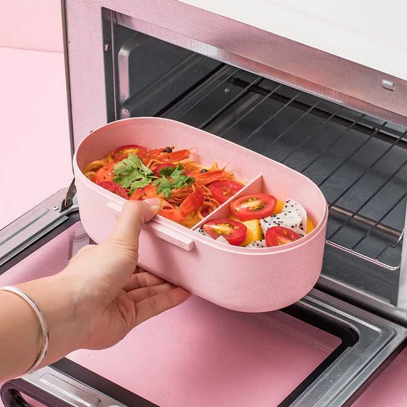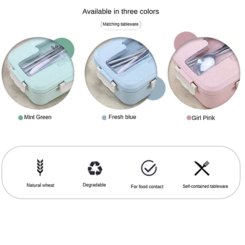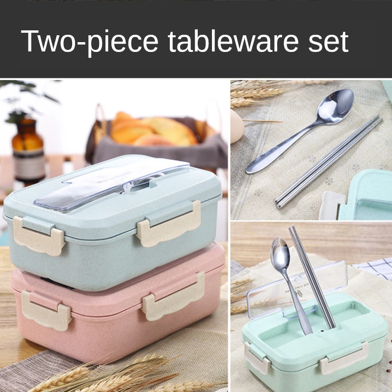 Чистый Ланч-бокс бэнто из пшеничной соломы с столовыми приборами