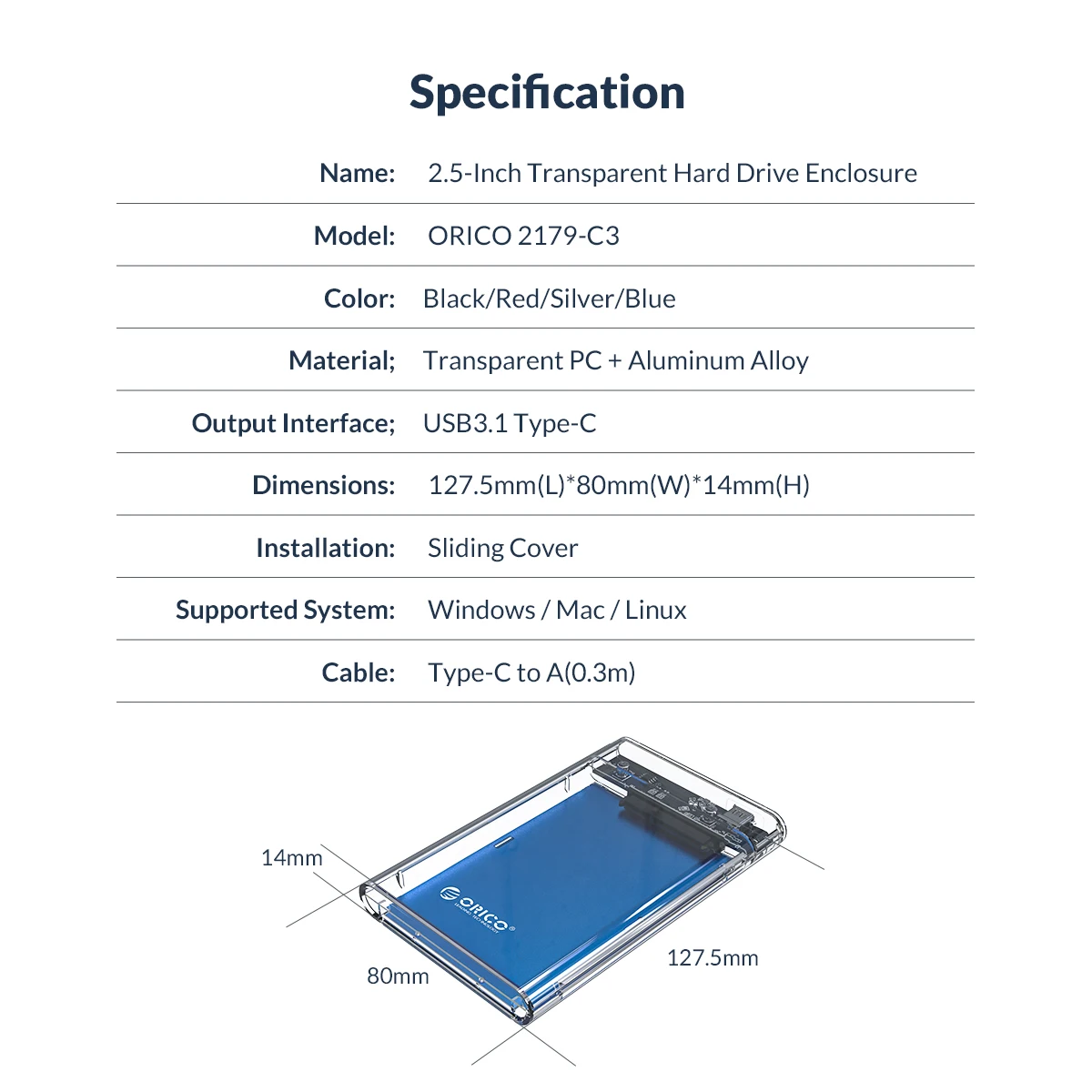 2. 2,5 дюймовый Прозрачный чехол для жесткого диска