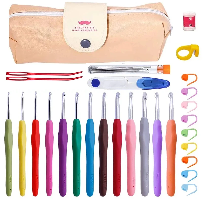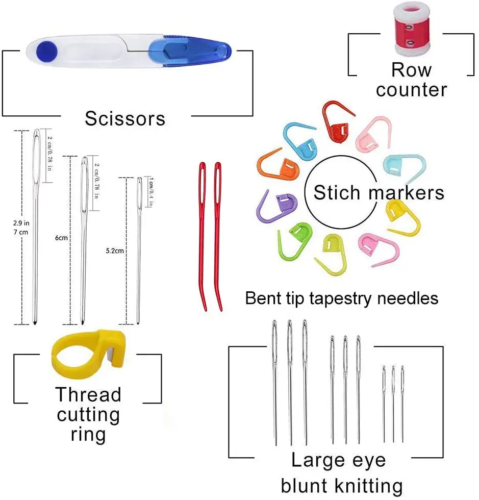 Набор вязальных крючков KAOBUY, 38 шт., вязальные спицы с большим ушком, вплетать в пряжу, набор игл, инструменты для плетения с сумкой