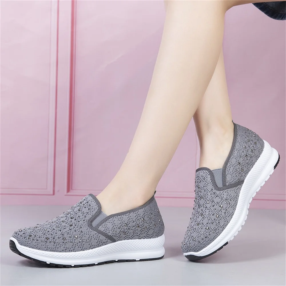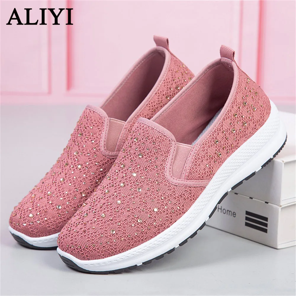 Новая весенняя повседневная обувь для женщин 2021 с дышащей сеткой Стразы Женская обувь без застежек; Удобные мокасины для дома на открытом воздухе спортивные кроссовки для ходьбы