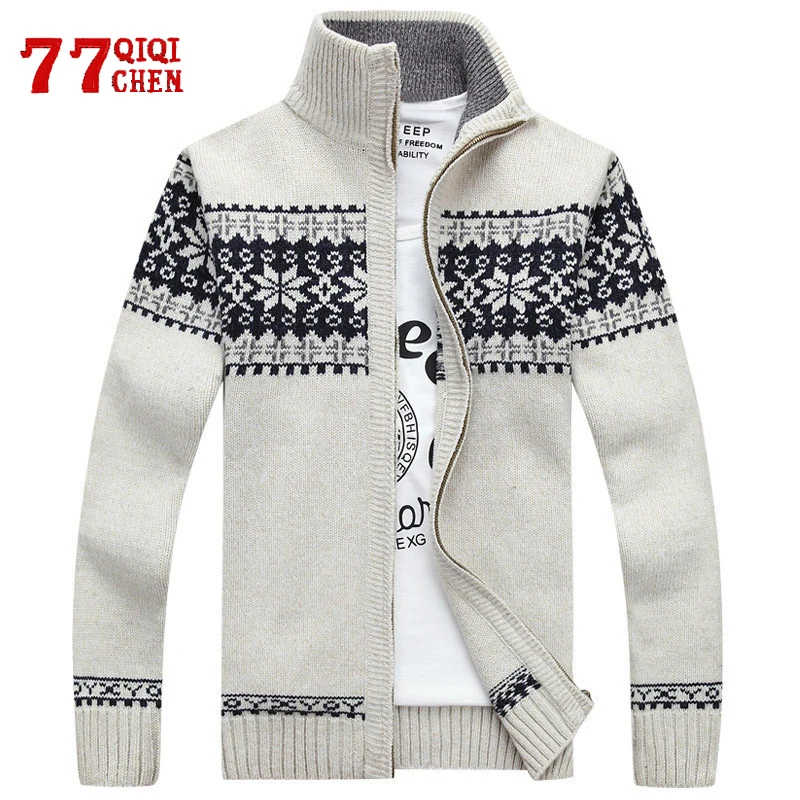 Зимний мужской жаккардовый свитер, пальто, тонкий воротник-стойка, ...