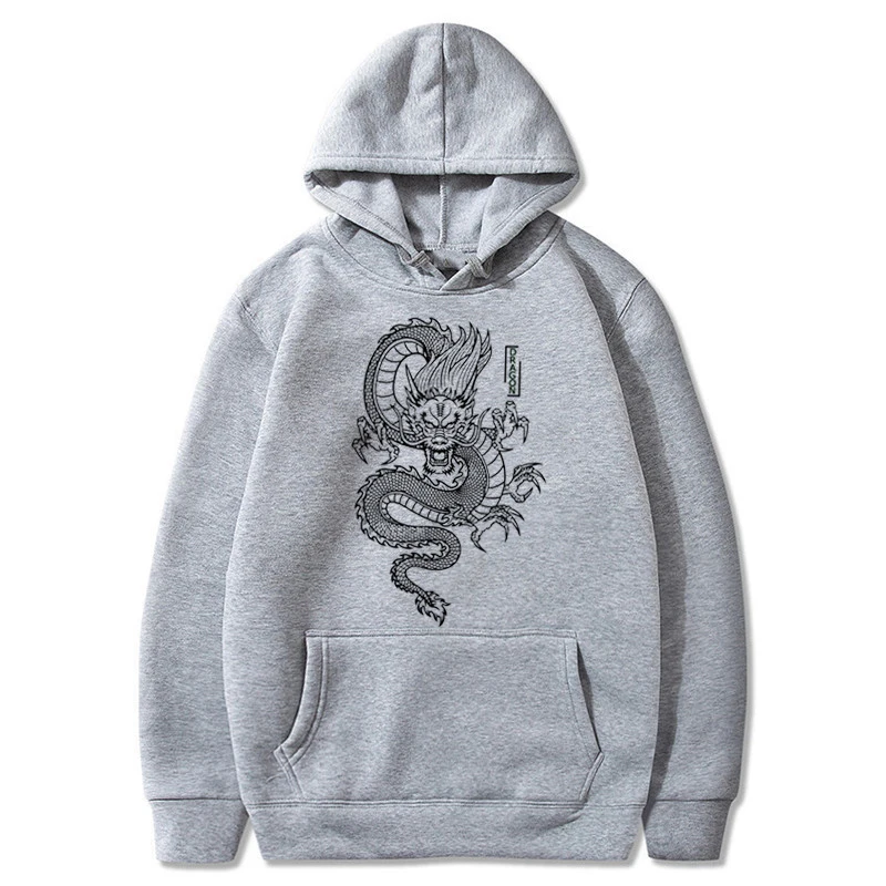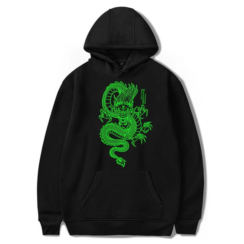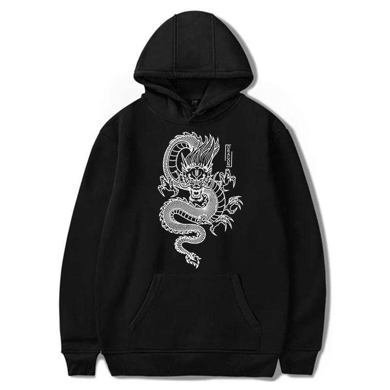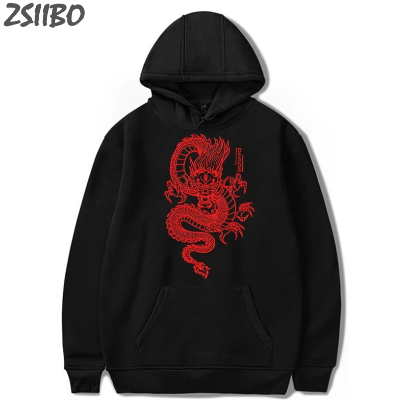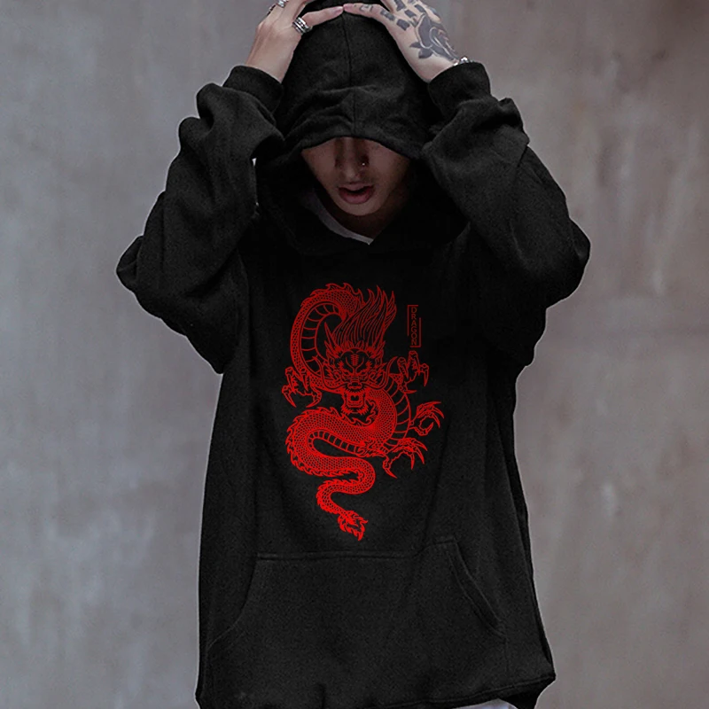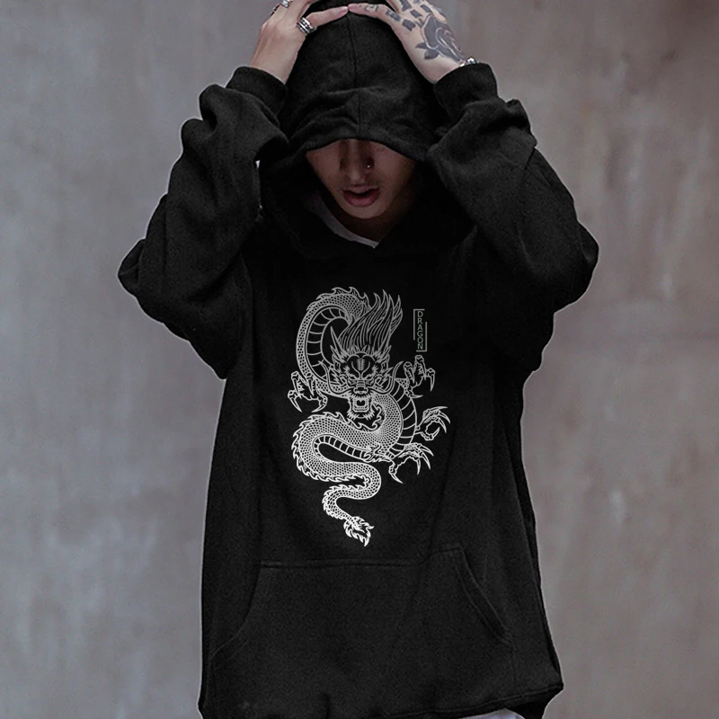 Мужская толстовка с капюшоном, с принтом дракона, в стиле Харадзюку