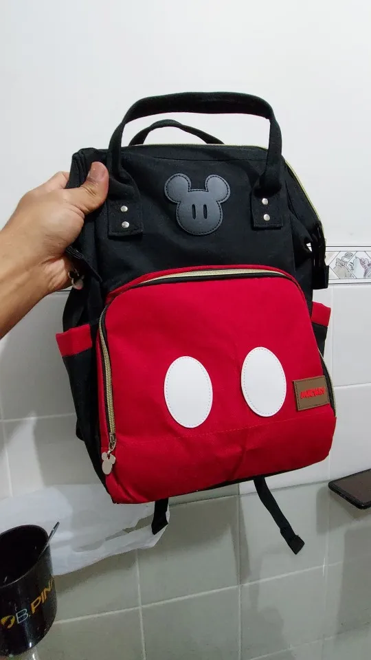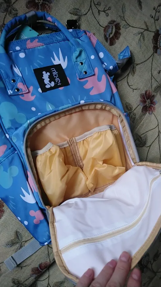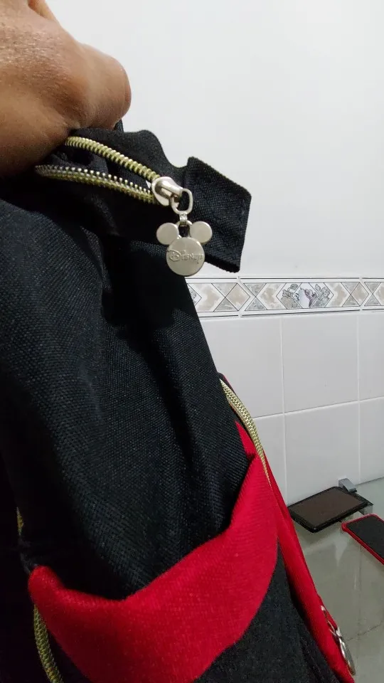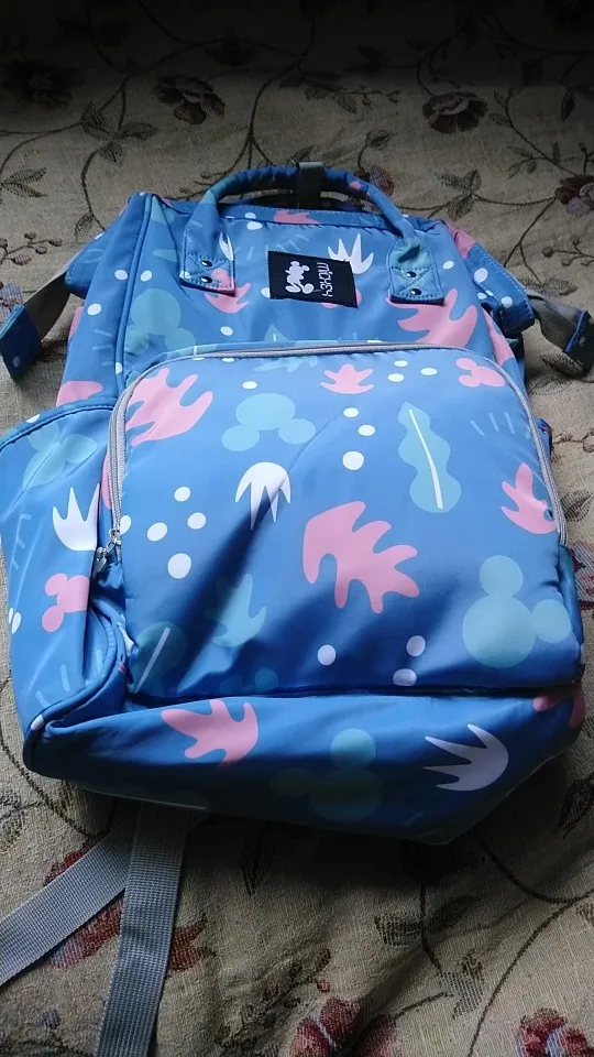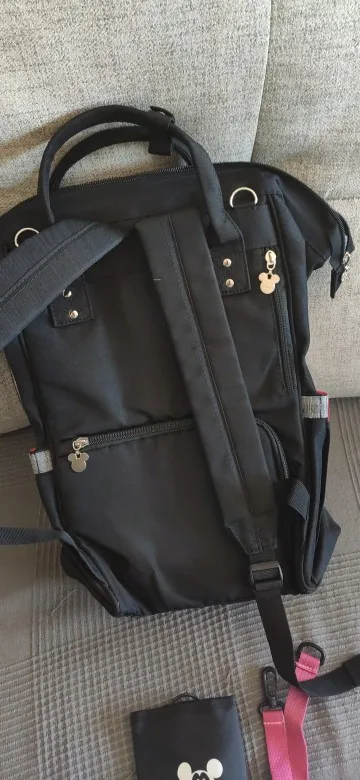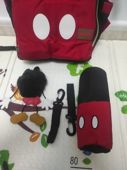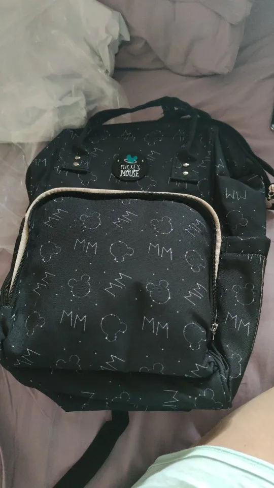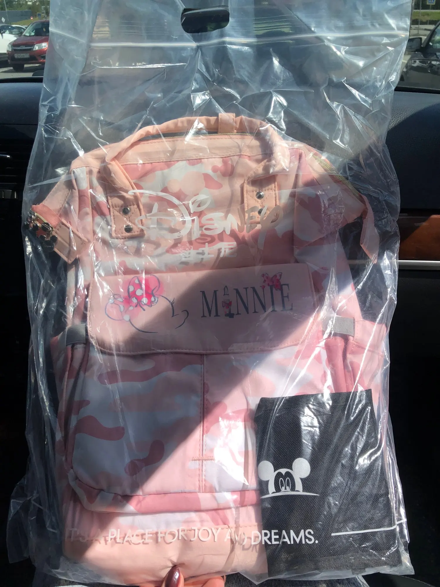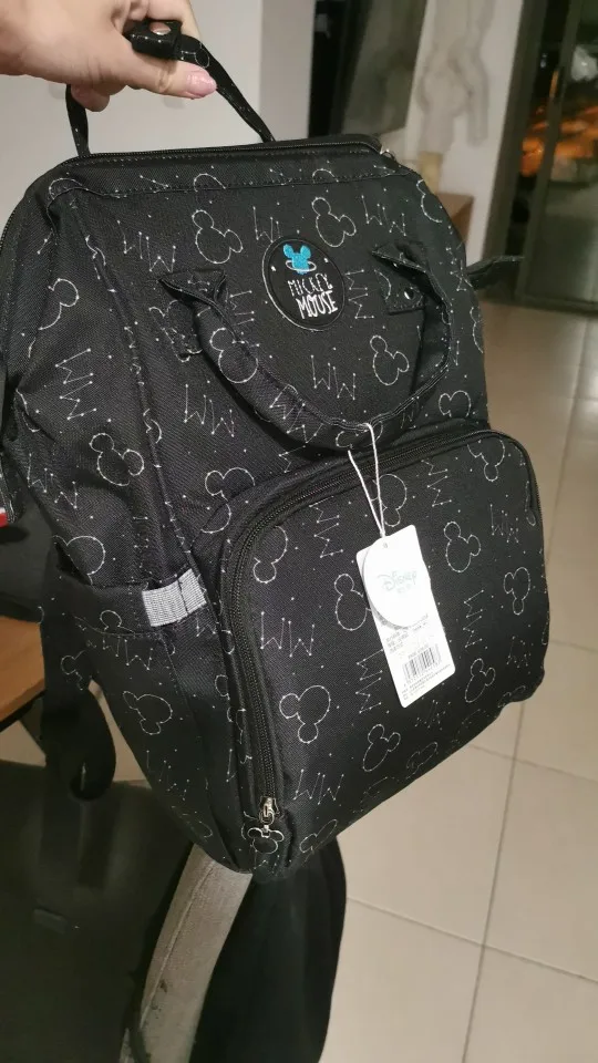 Looks Like good quality. Он обладает большой вместимостью и большой количеством карманов и отсеков. Он поставляется с одним или двумя помпонами «Микки» и бутылкой для бутылок. Он содержит две защитные карманы, которые идут против спины, которые очень полезны. Трафаретная печать и молнии кажутся более прочными. Хорошая покупка.
