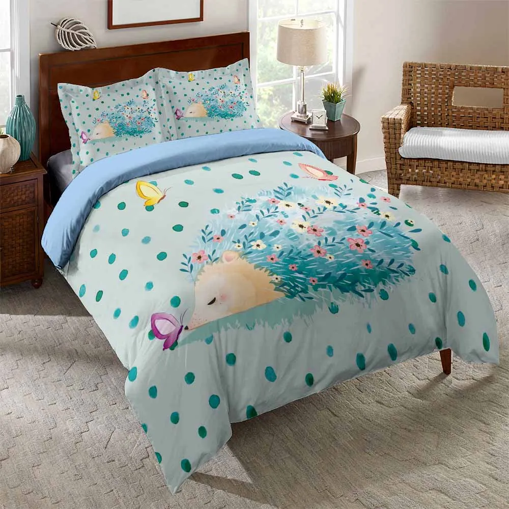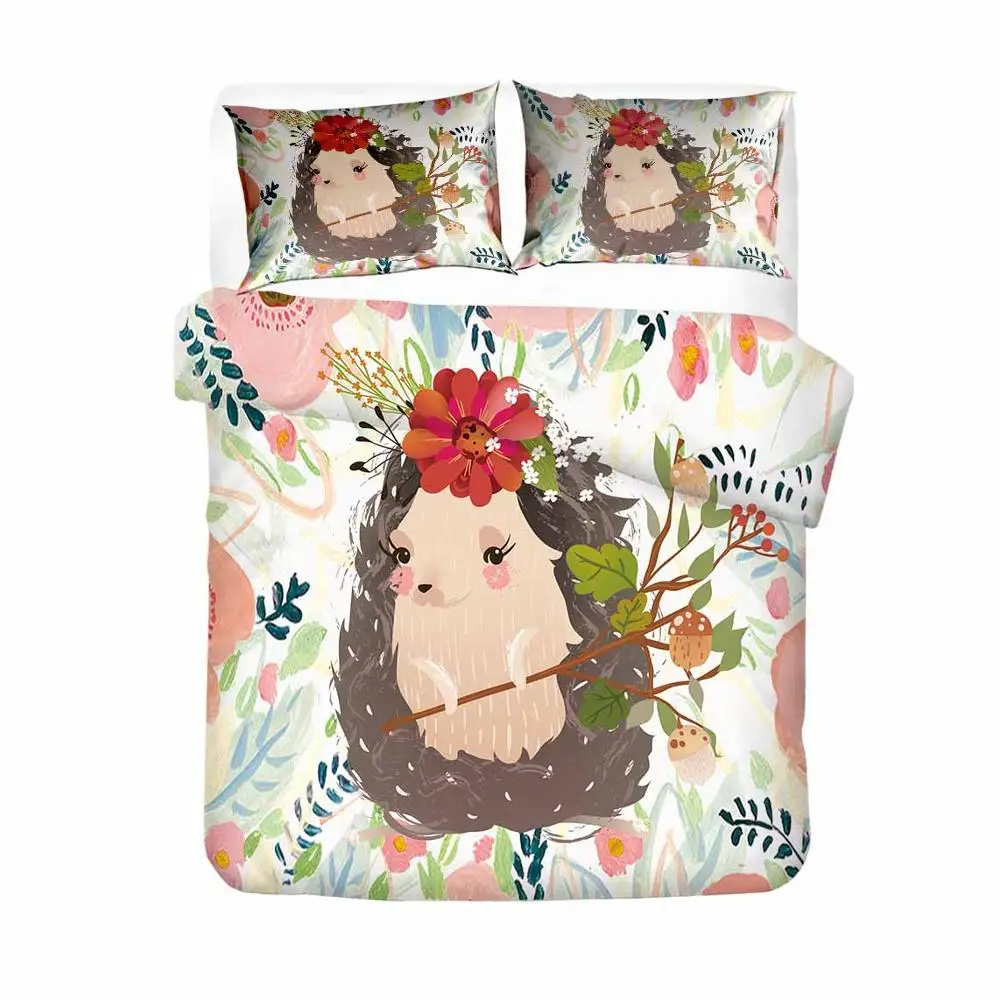 Изготовленный на заказ в виде ежа Пододеяльник Мультфильм детское постельное белье набор листьев Цветочные покрывало с рисунками зверей из мультфильмов Комплект постельного белья 2/3 предмета в комплекте, стеганое одеяло, размеры: комплект для обычной двухстальной