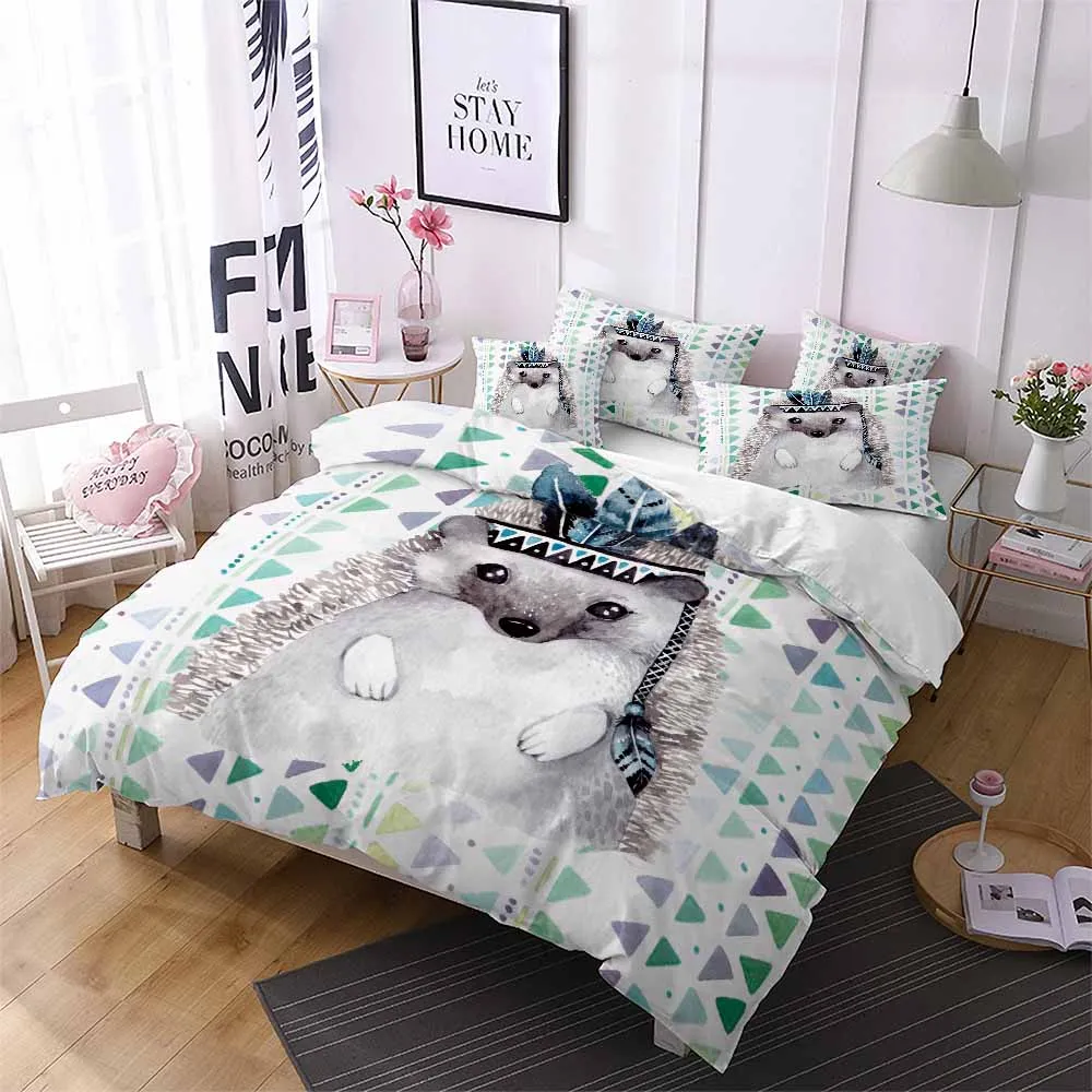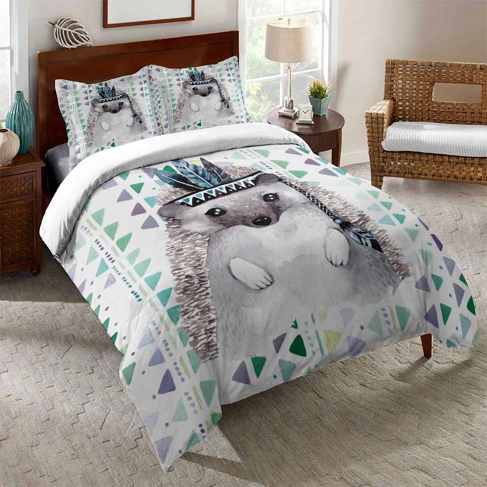 Пододеяльник с рисунком ежика на заказ, Детский Комплект постельного белья, покрывало с цветочным рисунком в виде листьев, Комплект постельного белья с изображением животных из мультфильма, 23 предмета, покрывало для одеяла