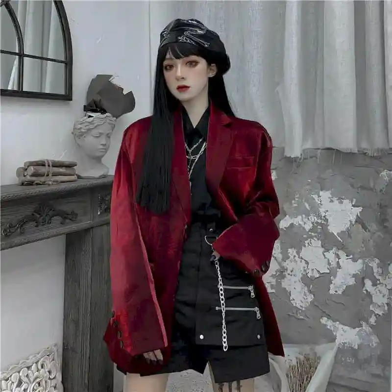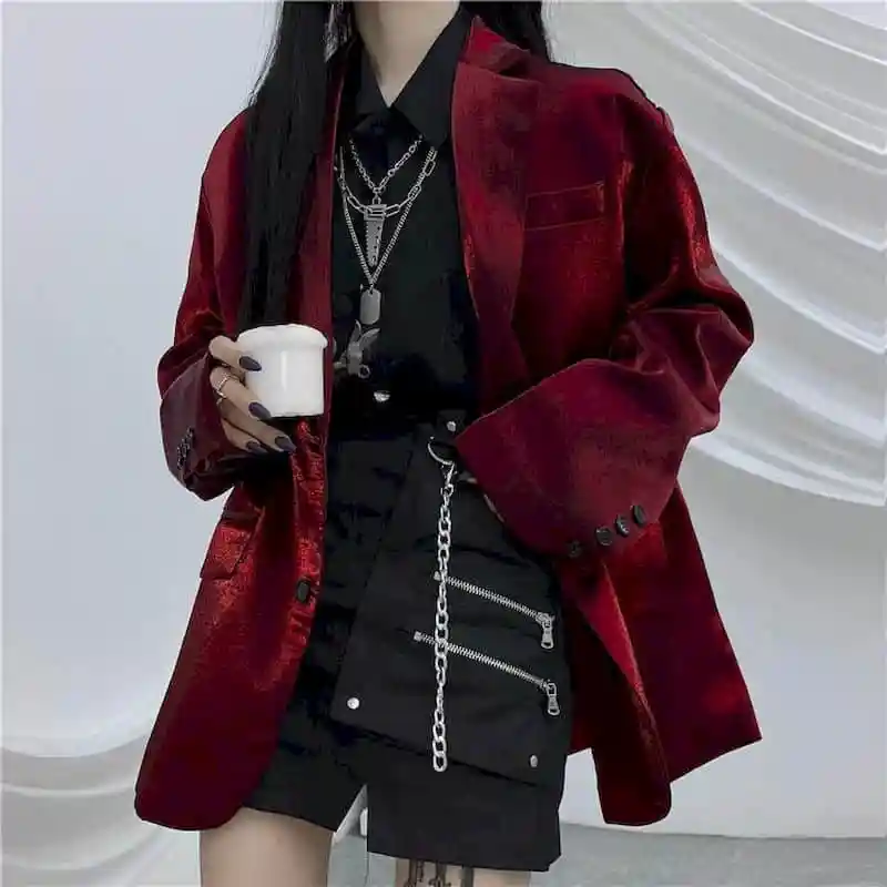 Женский винно-красный костюм пальто Яркий шелковый костюм Женская индивидуальная одежда в корейском западном стиле модное пальто свободная куртка женская одежда