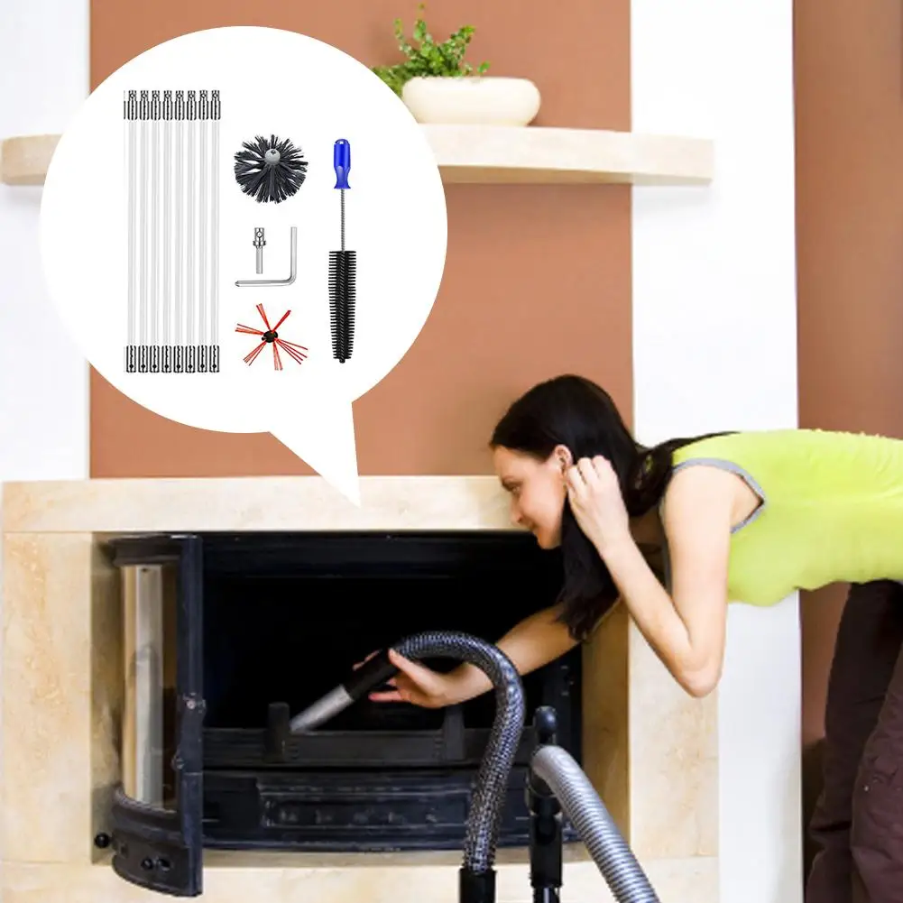 1 комплект Чистящая Щетка для дымохода подметальная щетка Усиленная нейлоновая штанга Система очистки труб камина с сменной головкой щетки
