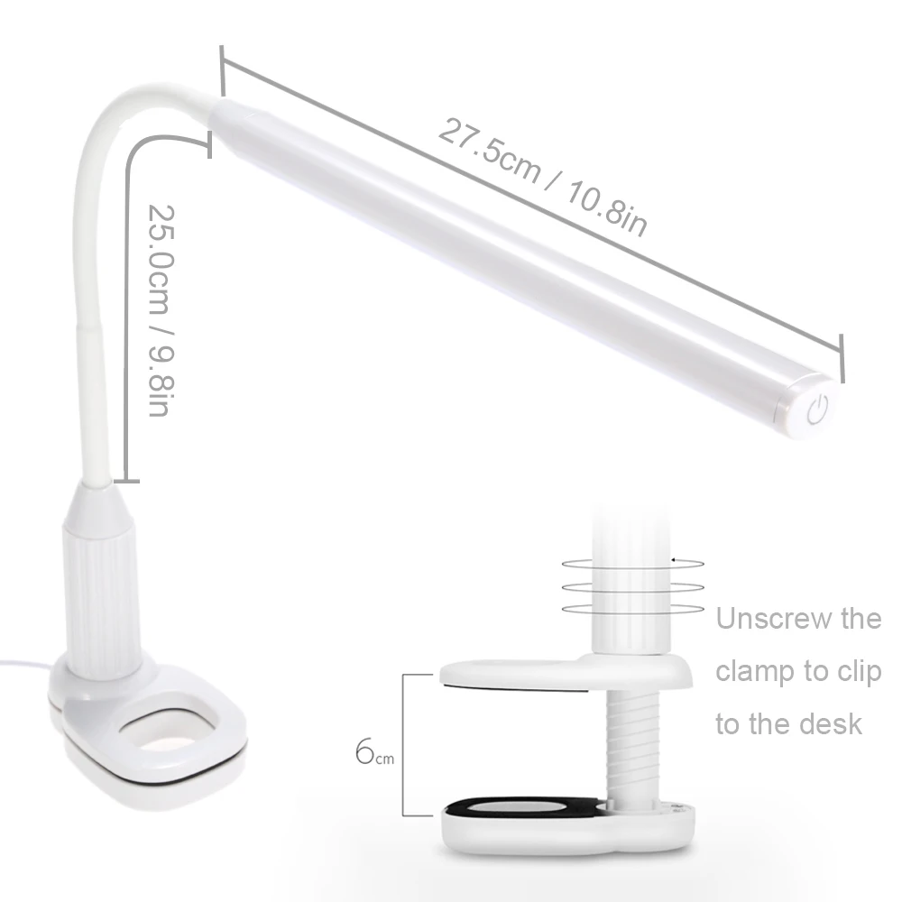 Эта настольная лампа для защиты глаз плавная регулировка яркости, питание от USB, защита глаз и полная регулировка. С помощью основания для зажима вы можете поместить его прямо там, где вам нужно. Комфортный белый светильник с рассеивателем с гладкой подсветкой будет держать глаза напряженными. Его можно использовать в компьютерном столе, офисном столе, велосипедной головке и т. д. Особенности: Бесступенчатая Регулировка яркости: Нажмите кнопку, чтобы настроить яркость, которая настроена для вас. Дизайн usb-порта: Он питается от зарядного устройства USB, внешнего аккумулятора USB или ноутбука, так что это удобно, когда вы хотите использовать его. Защита глаз: светодиодный светильник высокого качества, 500 люменов, не мерцающий и антибликовый светильник без стробов и излучения, он может держать ваши глаза подальше от усталости. Зажим дизайн и полностью регулируемый: Диапазон регулировки винтовой зажим достигать 6 см и прочная Ванна bendy позволяет поворачивать лампу гибко и регулировать светильник позиции по мере необходимости. Защита стола: резина в зажиме помогает создать трение с столом, в то же время предотвращает любые повреждения с поверхности стола. Область применения: диапазон зажимов 6 см позволяет использовать его идеально с музыкальными стендами, книжными полками, офисными столами, компьютерными столами, головными платами, велосипедными головками и т. д. Портативный и регулируемый светильник: отлично подходит для студентов колледжа и университета, которым нужен небольшой светильник s для чтения и учебы или хочет принести его с собой. Технические характеристики: Светильник Цвет: белый Яркость: плавное затемнение Световой поток: 500LM Количество СВЕТОДИОДНЫЙ: 24 шт. Вход: DV 5V Мощность: Max.5W Цветовая температура: 5000K-5500K (Чип на плате) Срок службы: 35000 часов Материал: Алюминий из алюминиевого сплава Цвет изделия: белый, черный (по желанию) Длина кабеля: 160,0 см Длина трубки: 25,0 см/9,8 дюйма Длина: 27,5 см/10.8in Зажим ширина зазора: 6,0 см/2.3in Вес товара: 257,0g/9,0 oz Размер посылка: 37,0*15,0*8,0 см/14,5*5,9 * 3.1in (Д * Ш * В) Посылка Вес: 356,0 г/12,5 oz Посылка список: 1 * светильник-зажим с usb-кабелем