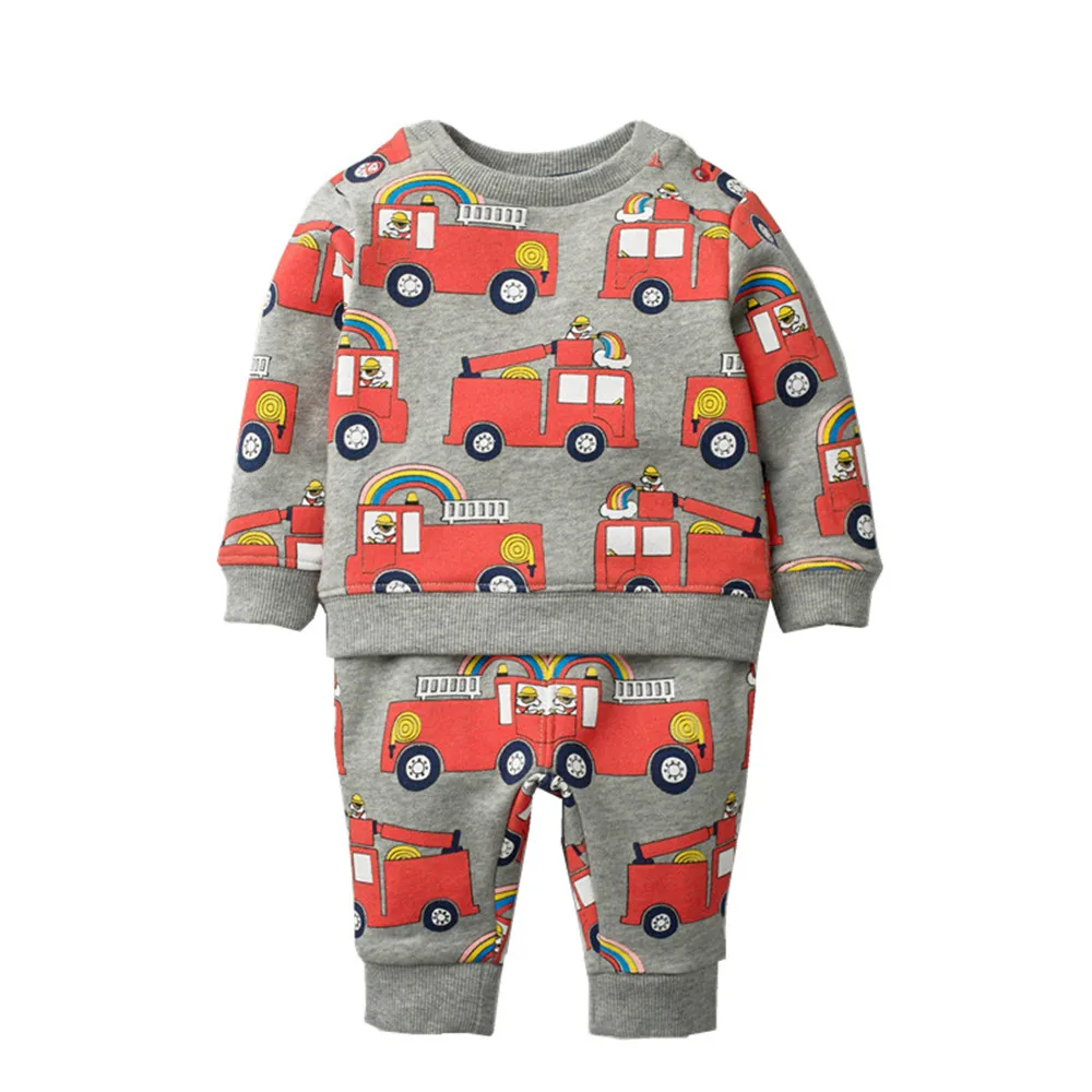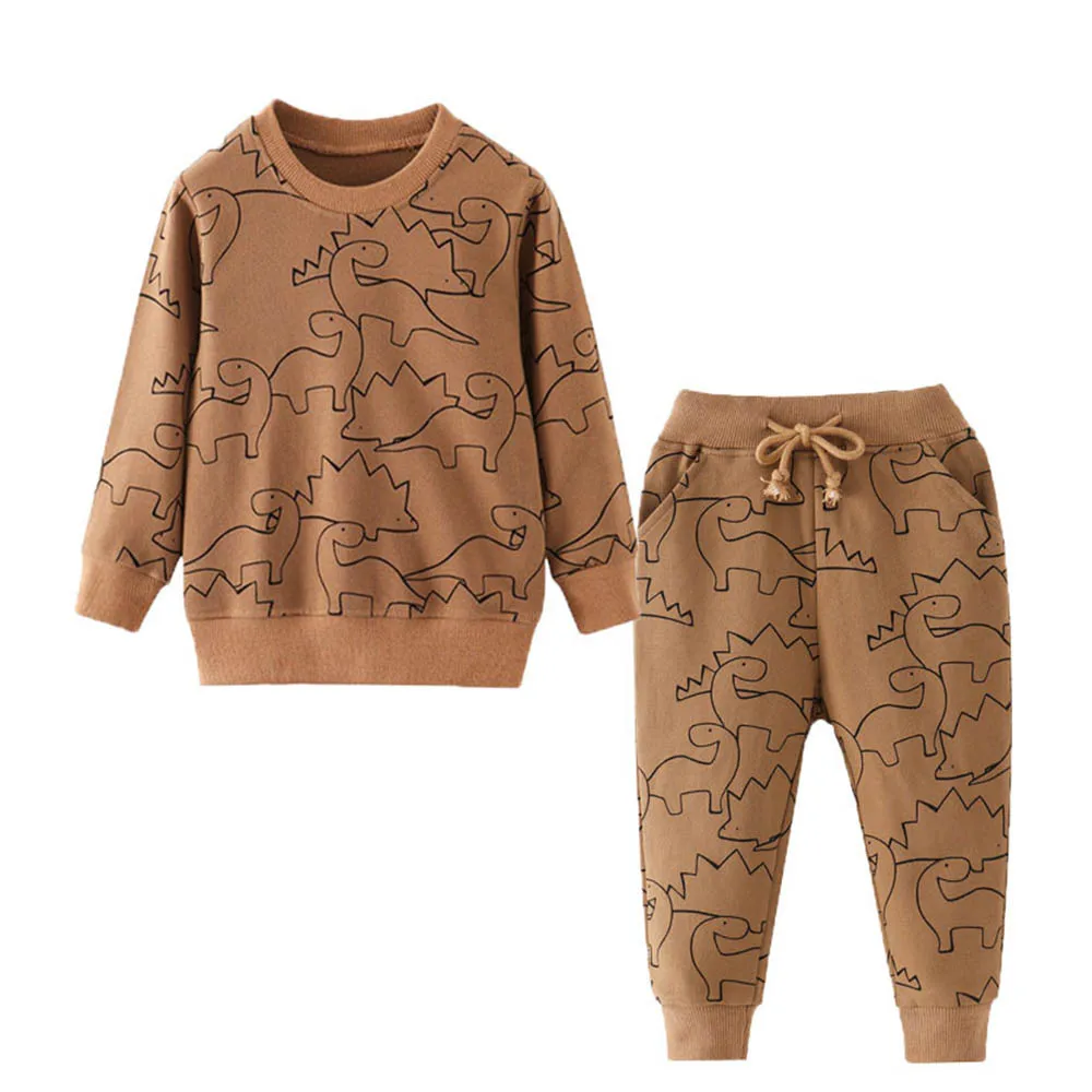 Jumping Metersновые хлопковые комплекты одежды с динозаврами на осень и зиму, комплекты одежды из 2 предметов с длинными рукавами для малышей Топ + низ, комплект для мальчиков и девочек