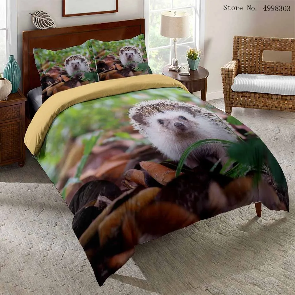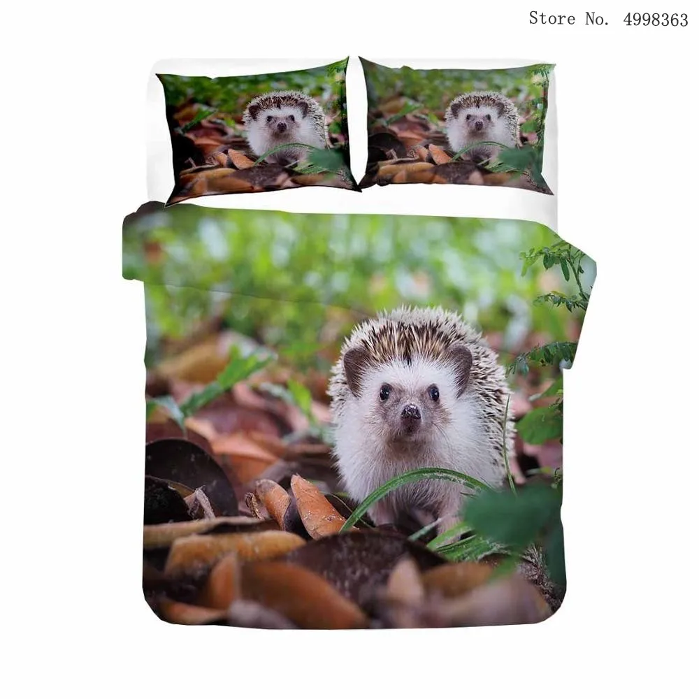 Набор постельных принадлежностей с мультяшным ежиком, с изображением животных из леса, пододеяльник, наволочка, одиночная двуспальная Королева, кровать, покрывало с листьями, цветочный Комплект постельного белья