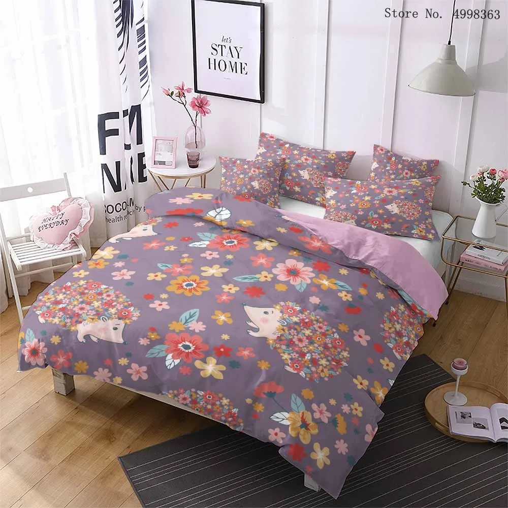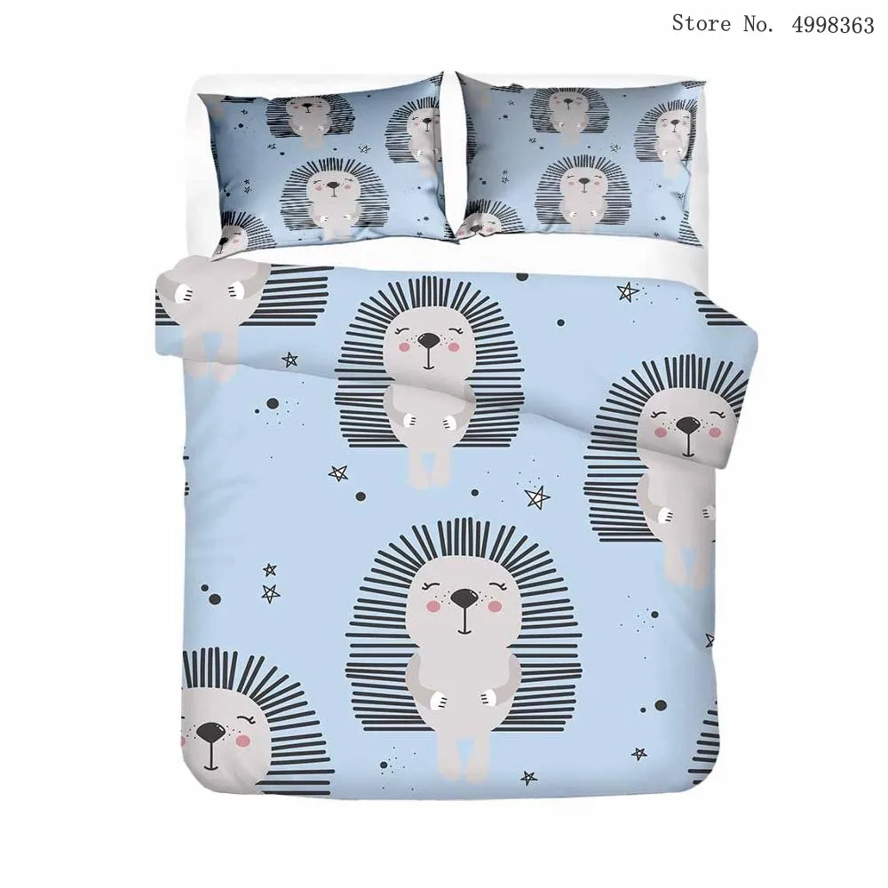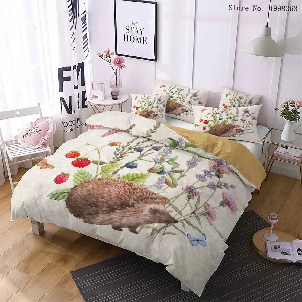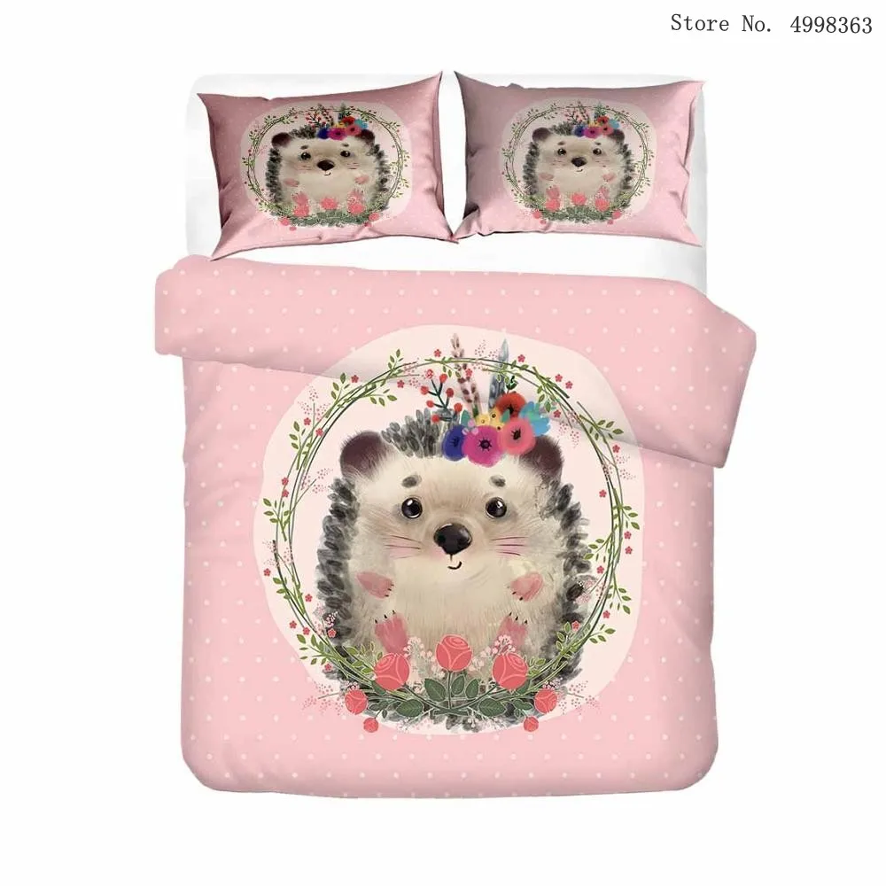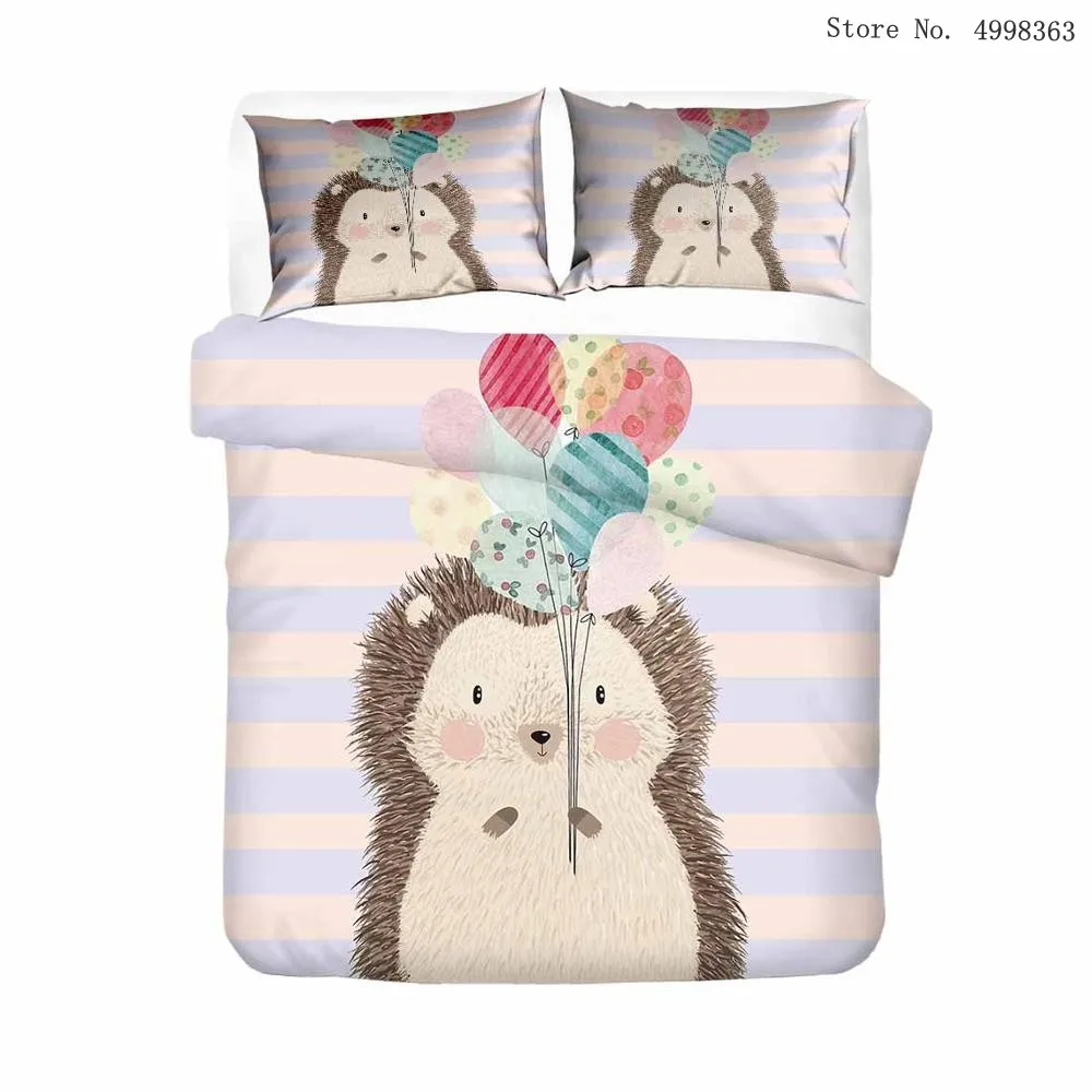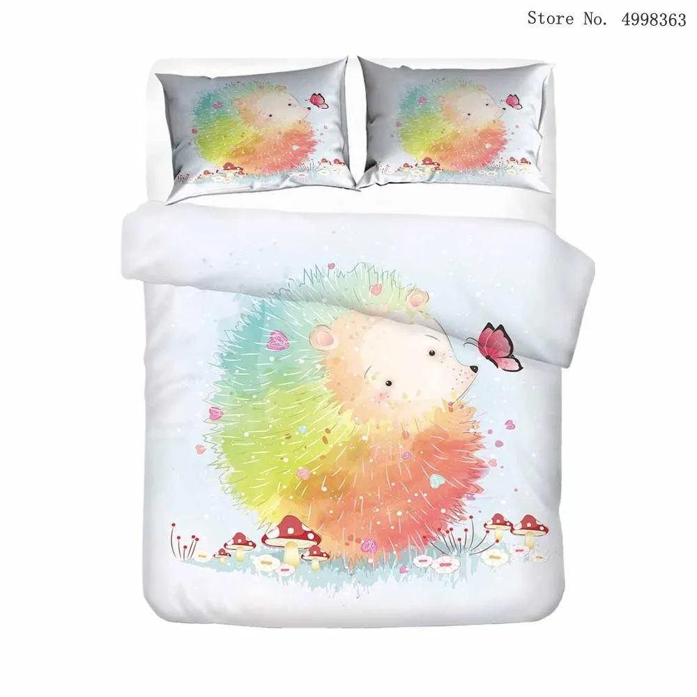 Мультяшный ежик, комплекты постельного белья, Лесной животное, пододеяльник, наволочка, односпальная, двойная, королева, король, покрывало, лист, цветок, Комплект постельного белья