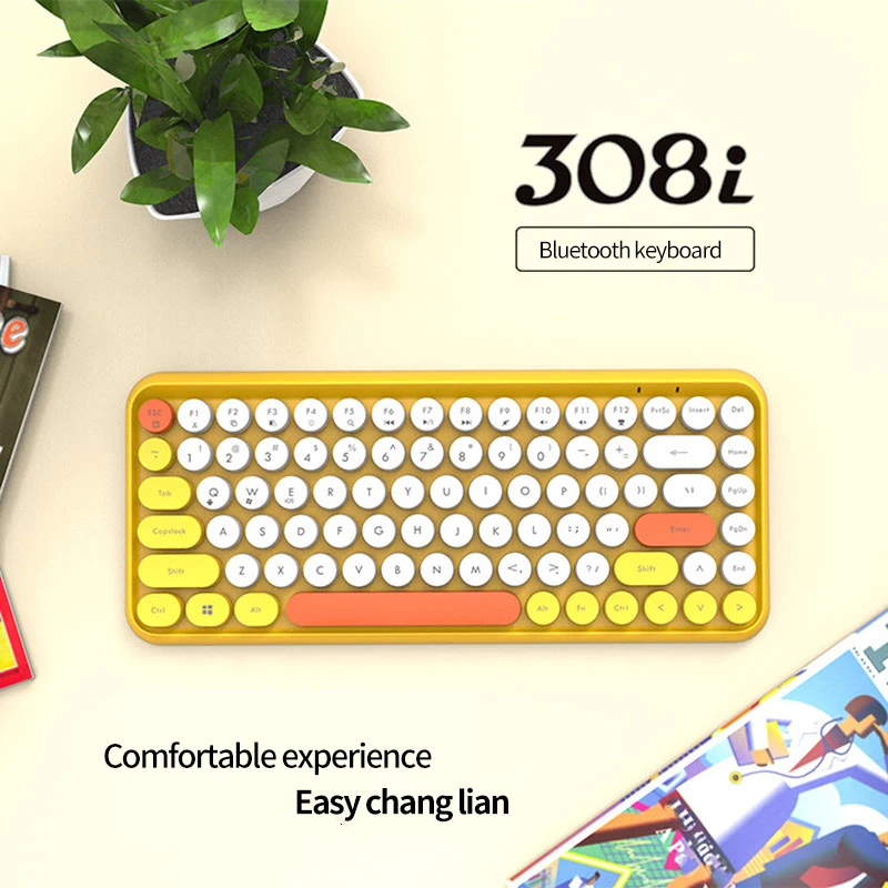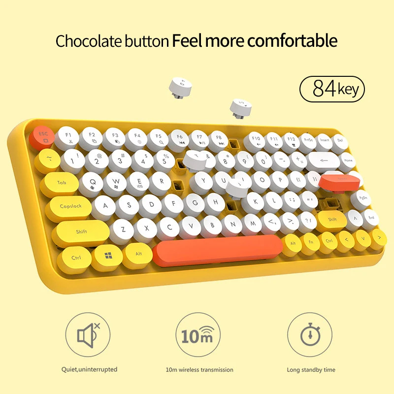 Беспроводная Bluetooth клавиатура и мышь набор симпатичная панк клавиатура Ретро красочная 84 круглая клавиатура цветная Водонепроницаемая клавиатура
