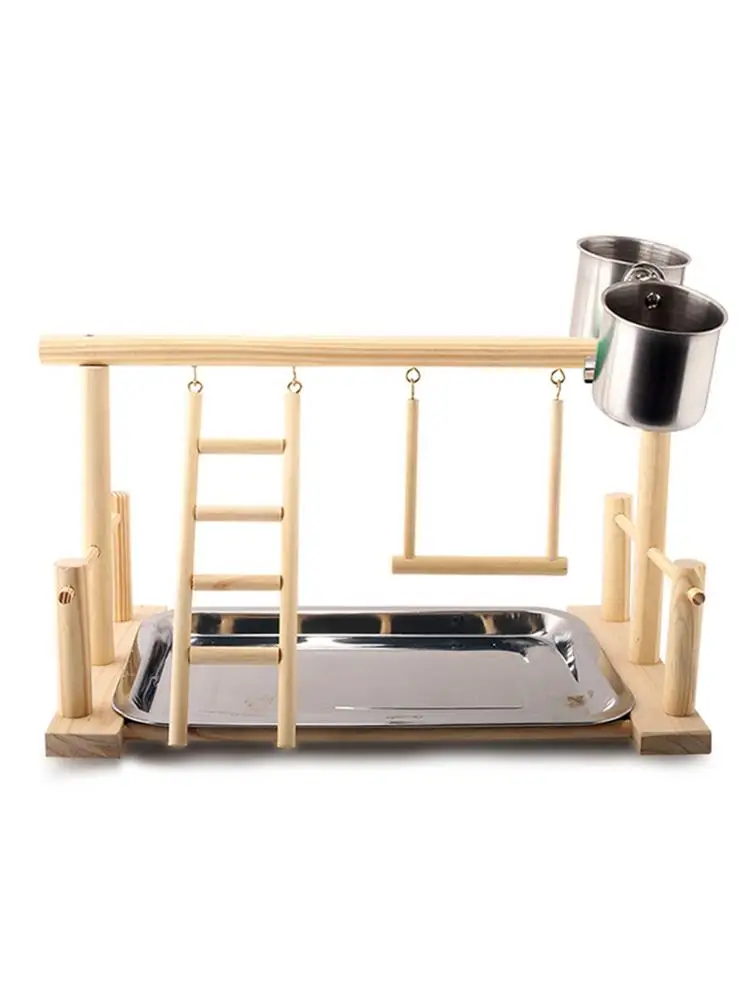 Игрушечная подставка для тренировок, деревянная игровая площадка с чашкой-кормушкой