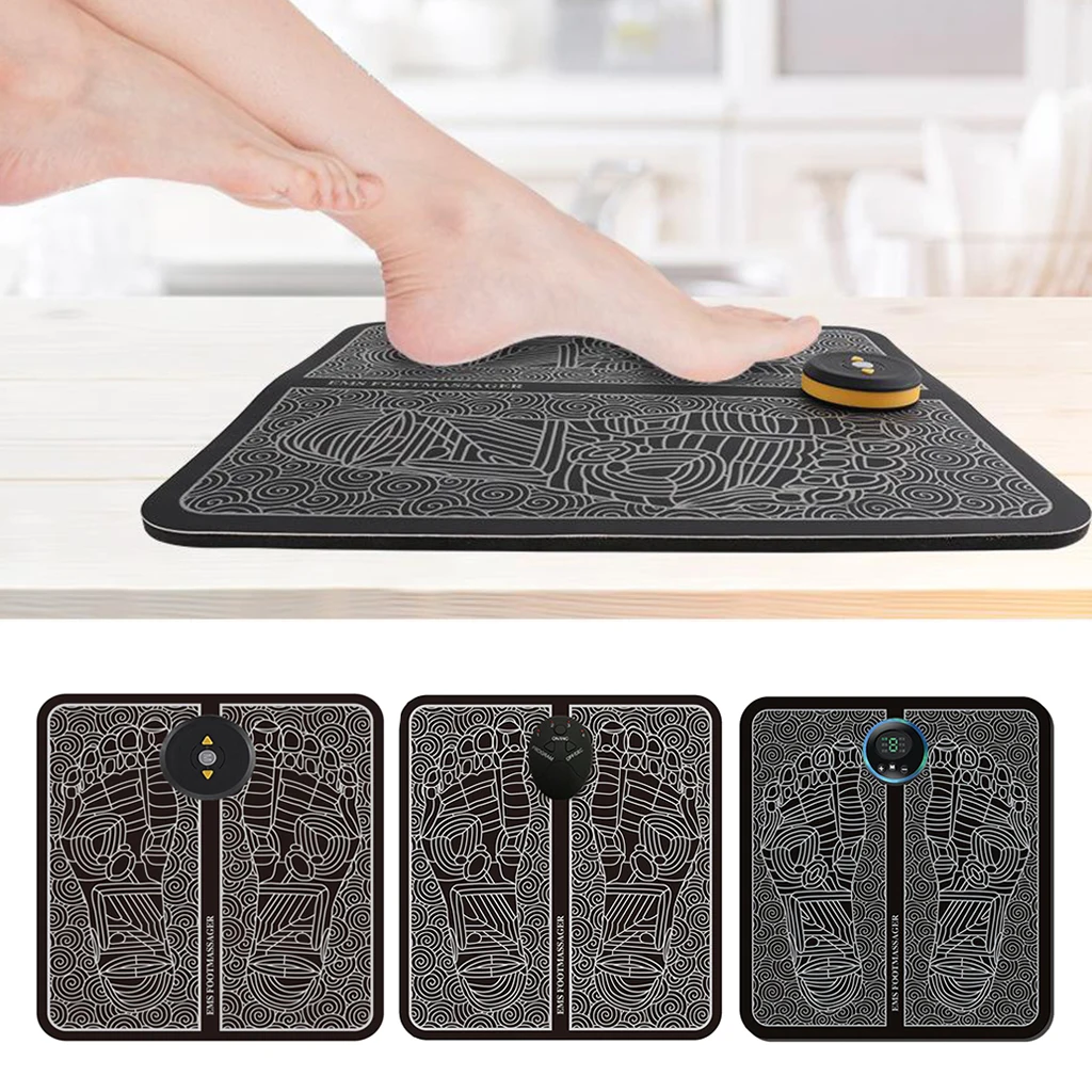 -Инновационный массажер для ног: высокотехнологичный массажер для ног предлагает 6 различных режимов лечения для вашей подошвы и тела. Используйте низкочастотную импульсную электрическую технологию массажа (EMS) для ног, лодыжки.-Улучшение кровообращения: улучшение кровообращения в ногах и Снижение мышечной слабости ног.-Портативный и Перезаряжаемый: массажер для ног легкий, складной, Перезаряжаемый/работающий от аккумулятора, легко переносится в любом месте. Вы можете расслабиться, куда бы вы ни отправились.-Легко чистить: Изготовлен из мягкого материала, из искусственной кожи, можно сушить влажным полотенцем после использования. Можно использовать спокойно при просмотре телевизора, чтении, работе в офисе или расслаблении.-Широко применимый: массажер для ног помогает вам облегчить ежедневный дискомфорт, подходит для путешественников, людей среднего и пожилого возраста, офисных людей, женщин, которые часто носят высокие каблуки.