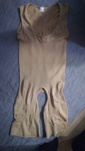 Получила. Быстрая доставка, брала наугад, потому что не угадаешь с размерным рядом. Пришёл размер, который заказывала, цвет бежевый. Сильной утяжки нет. Скорее, поддерживающее плотное полотно, так, чтобы живот прилип к позвоночнику, конечно нет))) лишние выпуклости на бёдрах приподнимает хорошо. Но есть один недостаток: широкая лента возле коленей сильно въедается и получается внешне эффект сардельки. Цельнокроеный, удобный в носке.