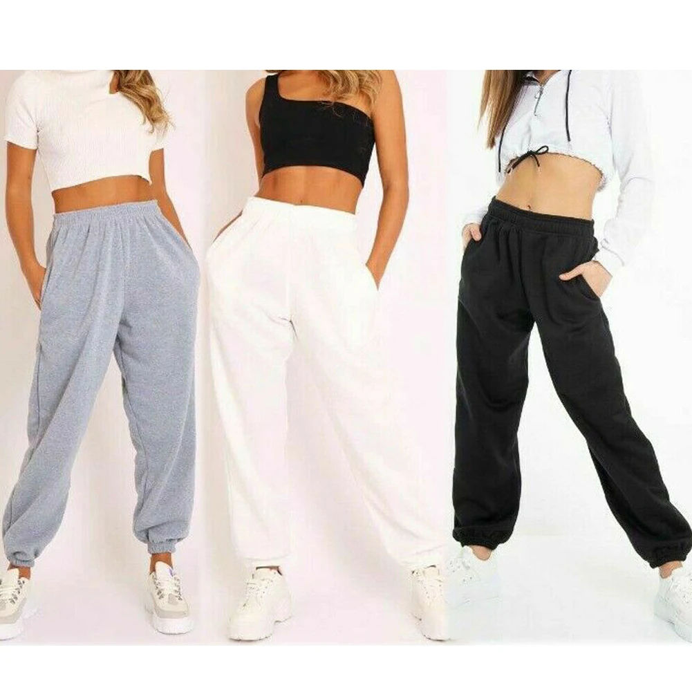 Женские повседневные шаровары, длинные штаны с высокой талией, спортивные штаны, мешковатые брюки, спортивные штаны для йоги, однотонные штаны