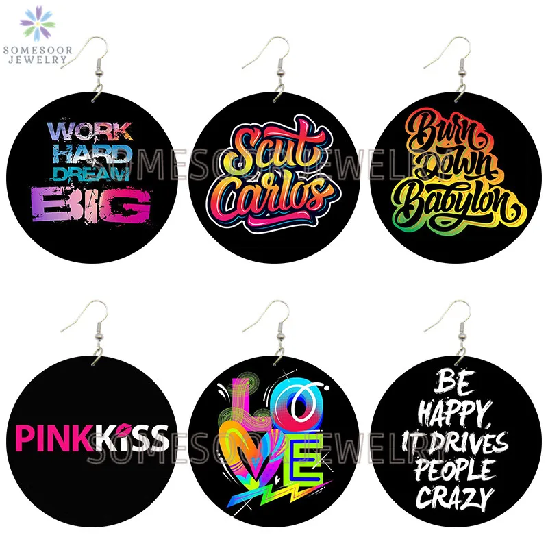 SOMESOOR Love Be Pro-деревянные серьги-подвески в виде надписей чер...