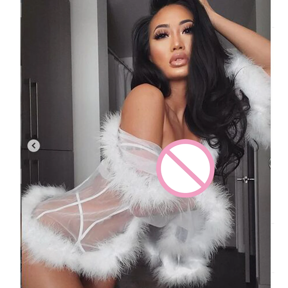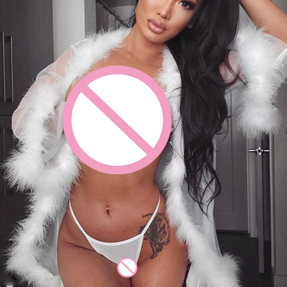 Пикантная Женская кружевная прозрачная меховая оплетка, ночная сорочка, модная прозрачная Эротичная ночная рубашка нижнее белье, женский халат