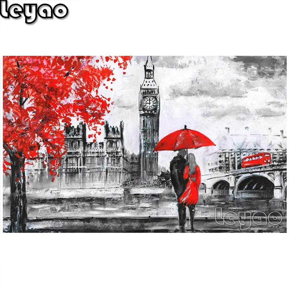 5d diy Алмазная вышивка Лондон Биг Бен, красный автобус, любовник, картина мозаика Алмазная картина городской пейзаж полный квадратный круглый стразы