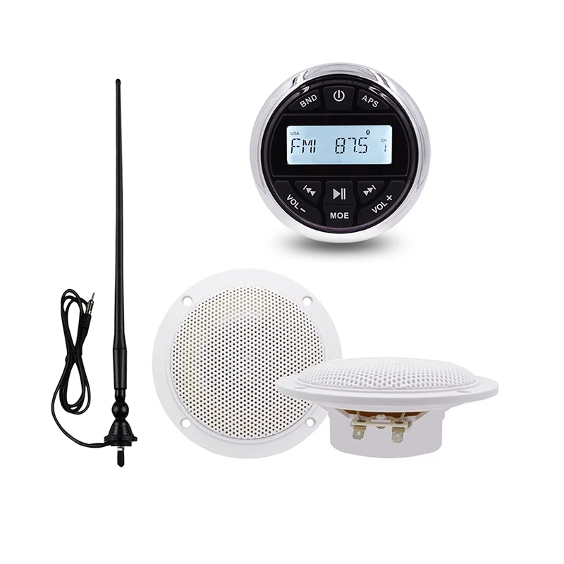 Морской Стерео Лодка аудио Bluetooth Радио FM AM Автомобильный MP3-плеер для мотоцикла Авто RV ATV UTV + 4 "водонепроницаемые морские колонки + радио антенна