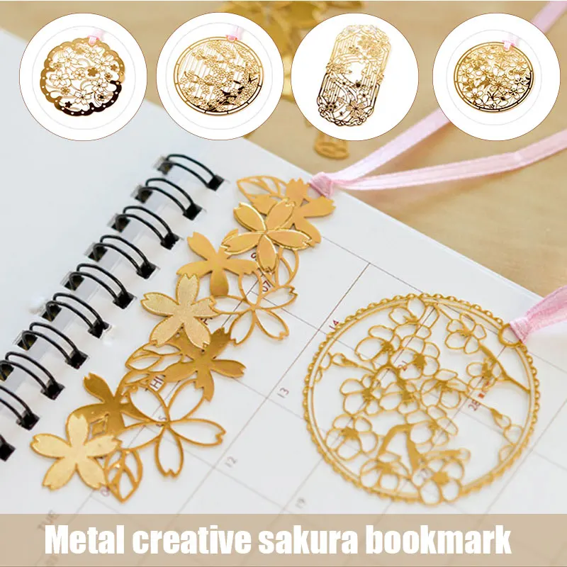 Металлические креативные закладки с цветами вишни. Симпатичные закладки в стиле ретро с листьями для учеников начальной школы. Канцтовары в китайском стиле, полые узоры, тонкая работа, четкие полосы и исключительное качество. Изысканный и легкий, легко зажимается и не повреждает книги