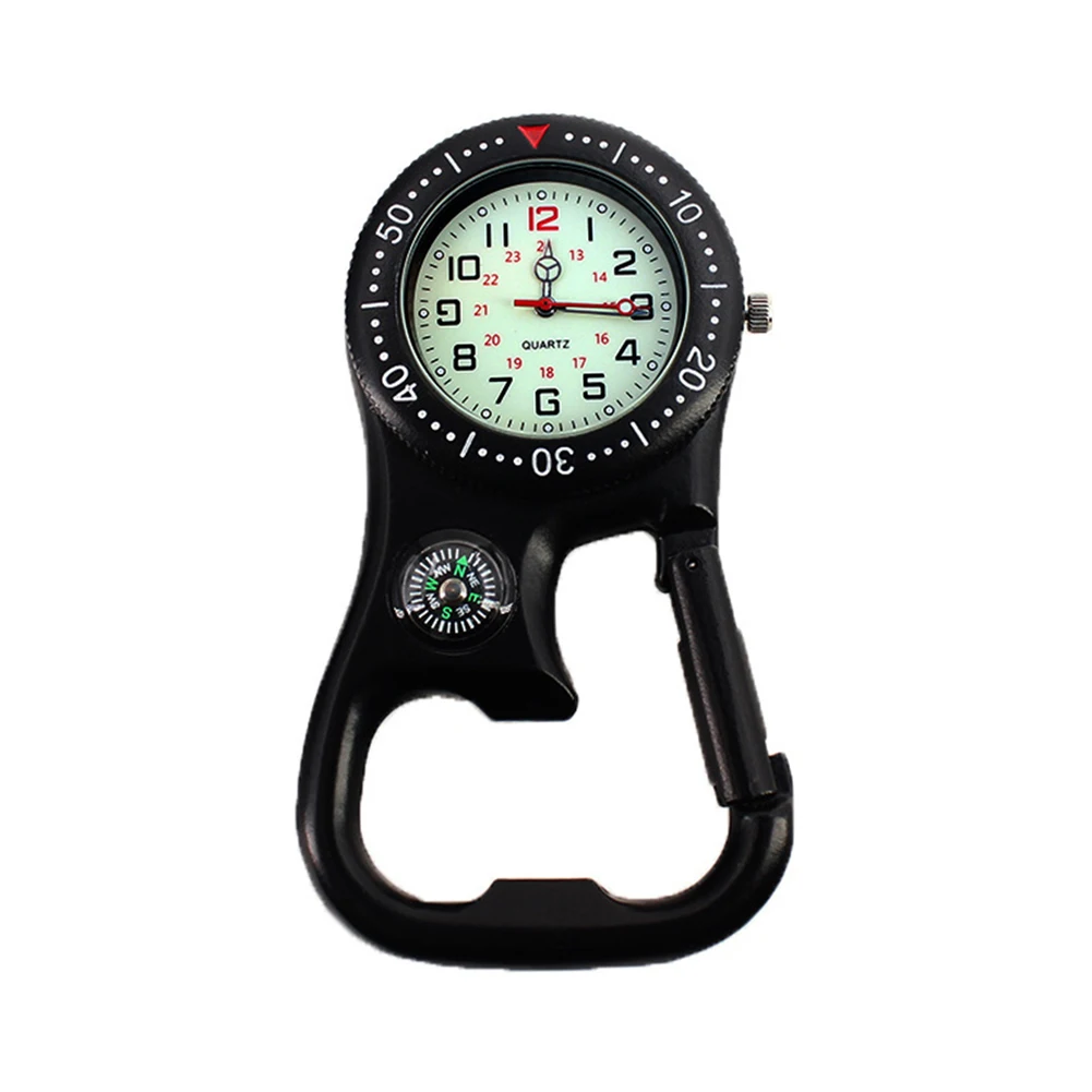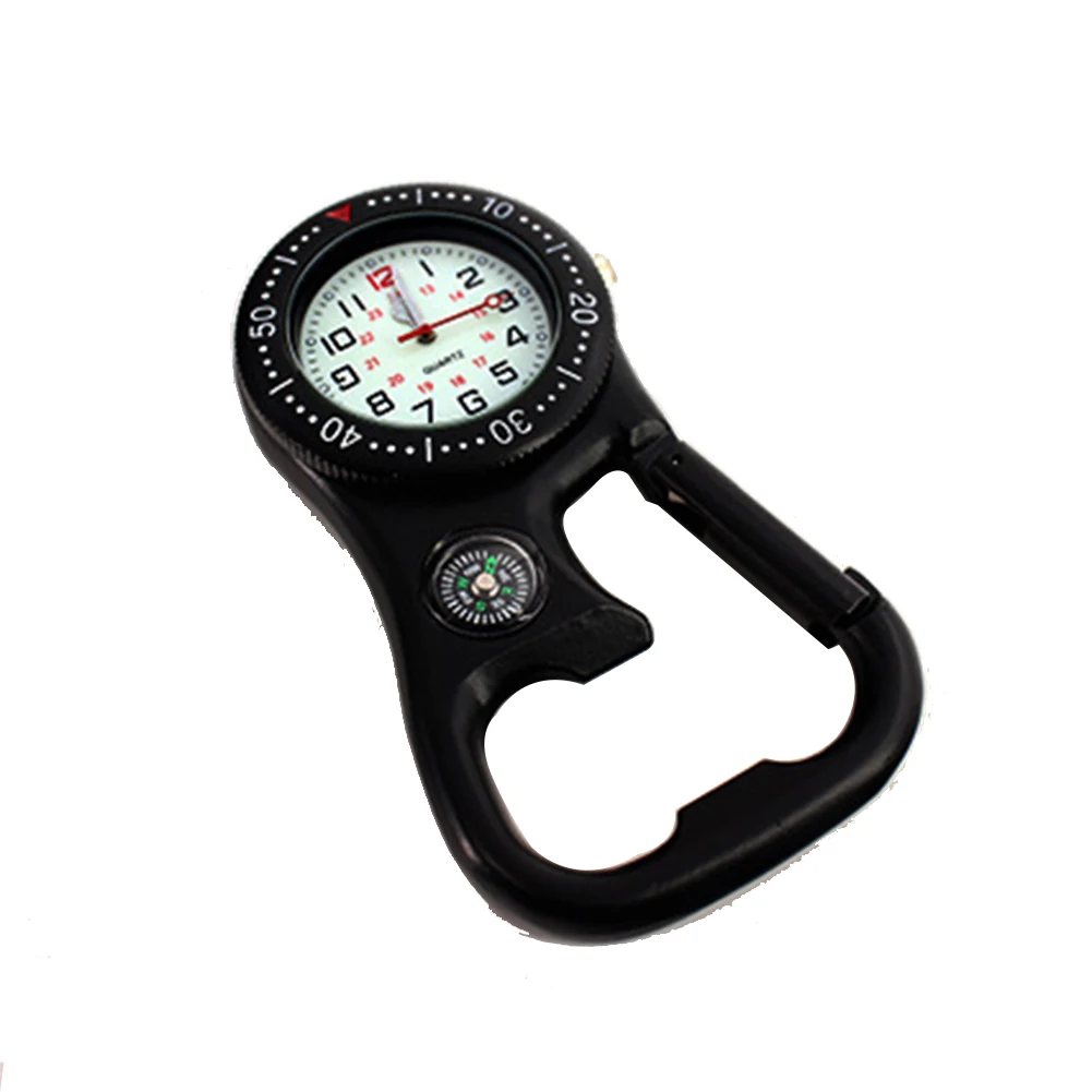 Особенности: компас и открывалка для бутылок, стиль карабина с зажимом, светящийся и двойной циферблат