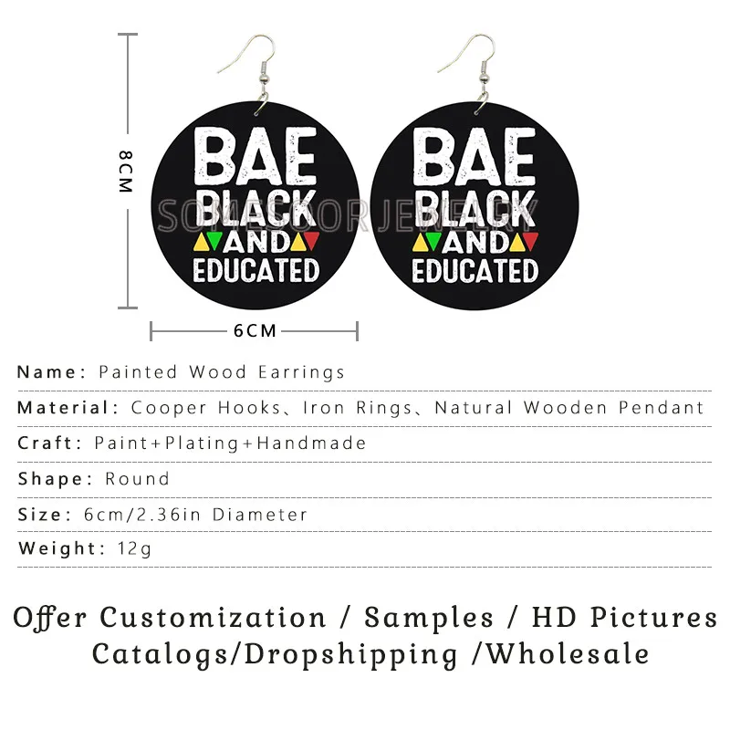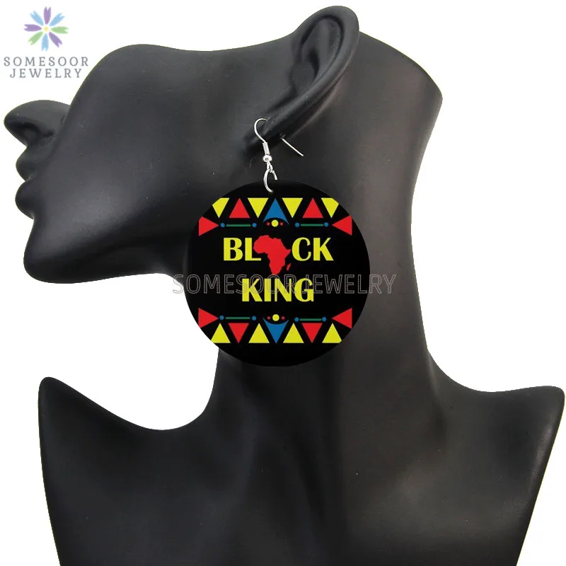 SOMESOOR sohell Black Queen напечатанные африканские деревянные висячие серьги BAE образованные King подвески-петли Висячие ювелирные изделия для женщин Подарки