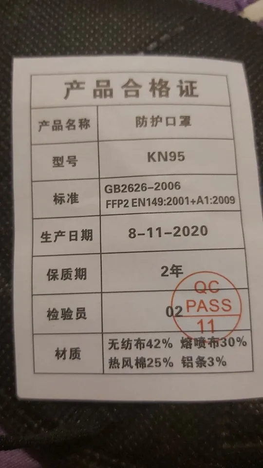 Идеально и поставляется с сертификатом, запечатанным на маске. Я прибыл до этого времени