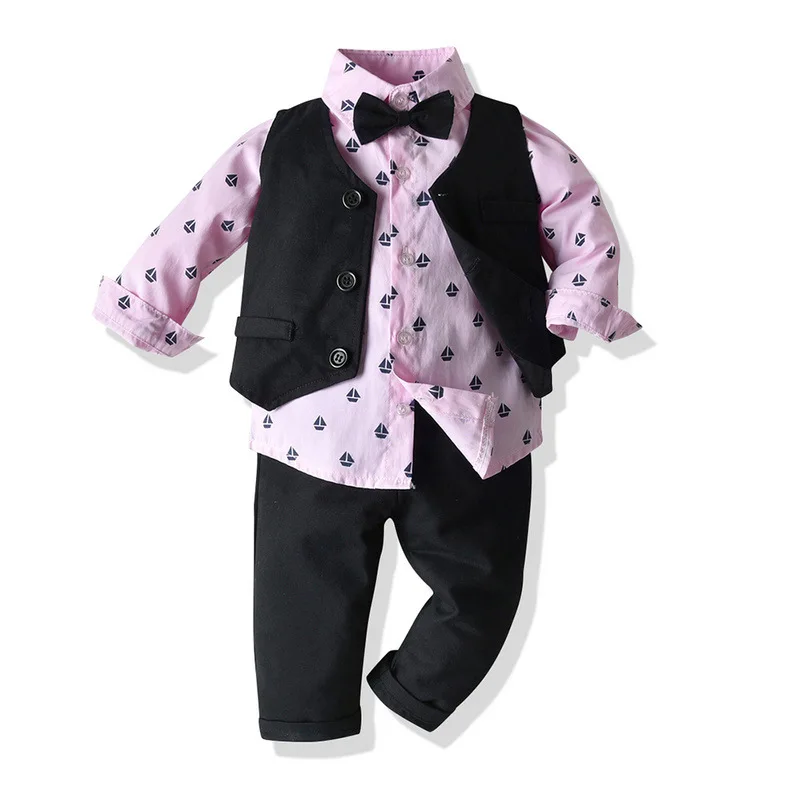 Рубашка для маленьких мальчиков праздничный костюм с бантом осенний...