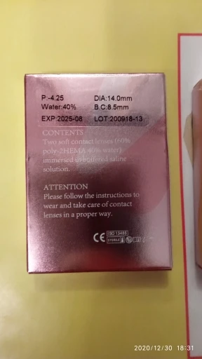 Страна: BR Color: 2pcs Lenses Degree: -4.25 Доставка: SHUNYOU_STANDARD_SG 26.12.2020