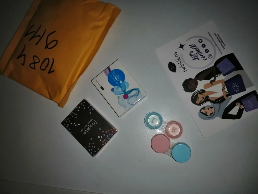 Получила я свои линзочки Купила 2 линзы за 206,68₽ Получила на почте,продавец правда забыл указать квартиру и работники почты мне позвонили по этому поводу Очень красивая коробочка,в подарок контейнер для линз.Выглядит достойно.Все в обычном пакетике. Как то боязно мерить,особенно посмотрев картинку внутри коробочки