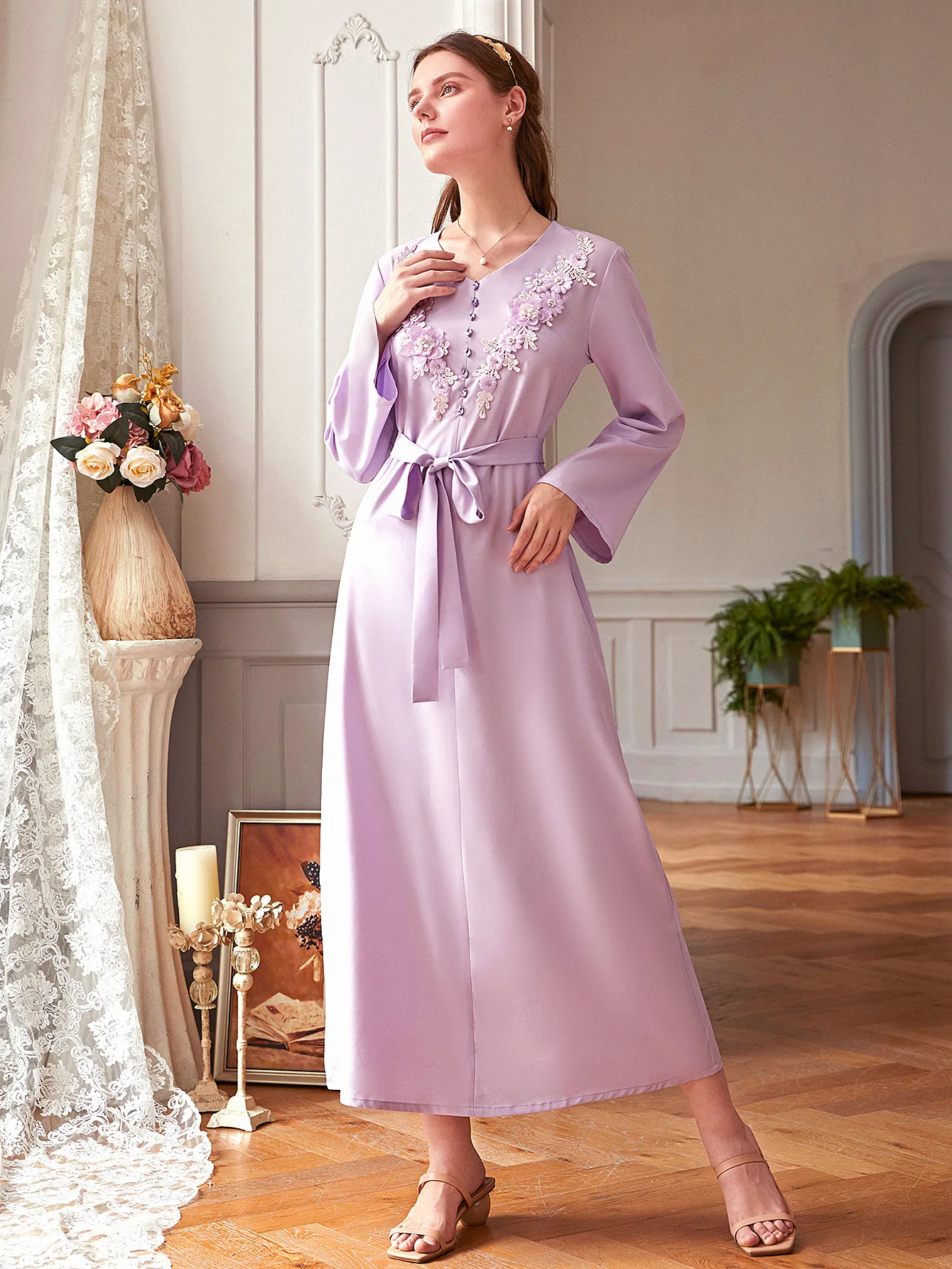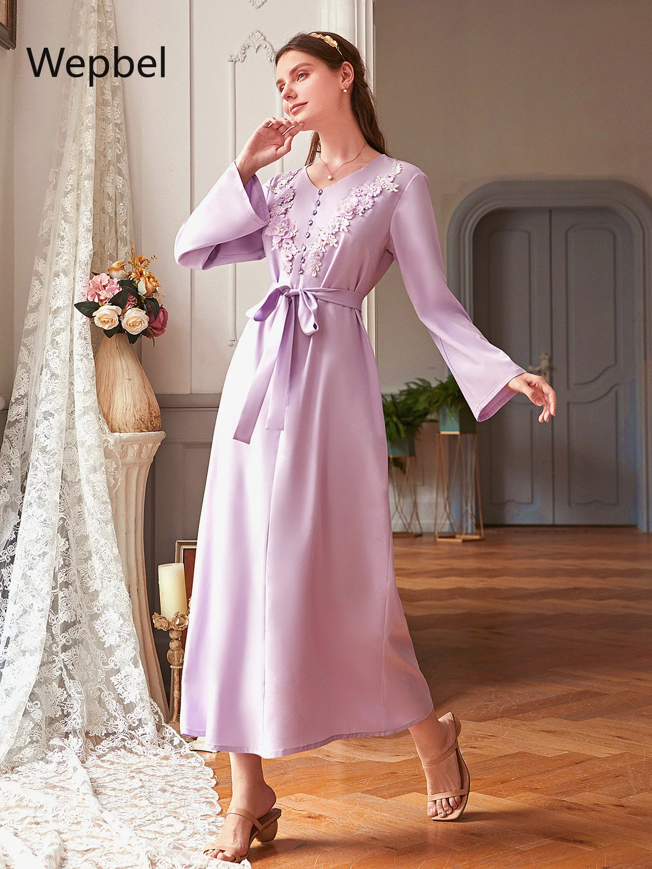 WEPBEL с длинным рукавом Арабская мусульманская абайя для женщин платье Стразы для ногтей на Ближнем Востоке турецкий индонезийский халат с высокой талией Marocain кафтан