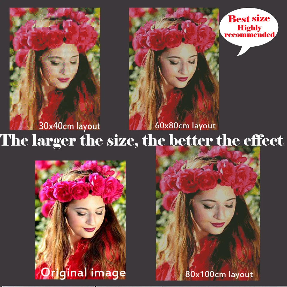 Алмазная живопись, красные цветы, девушка, вышивка крестиком, алмаз...