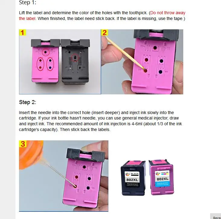 Зажим для чернильного картриджа Набор для пополнения чернил для hp ...