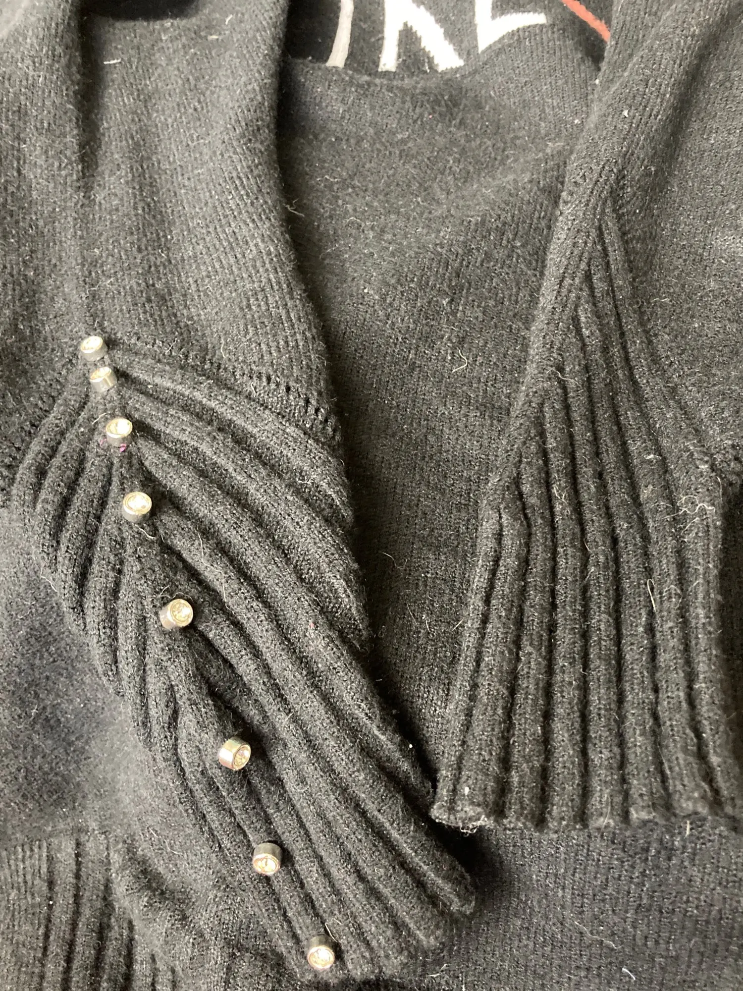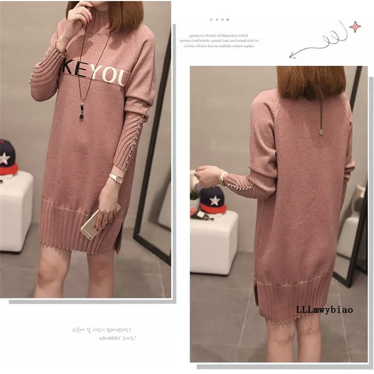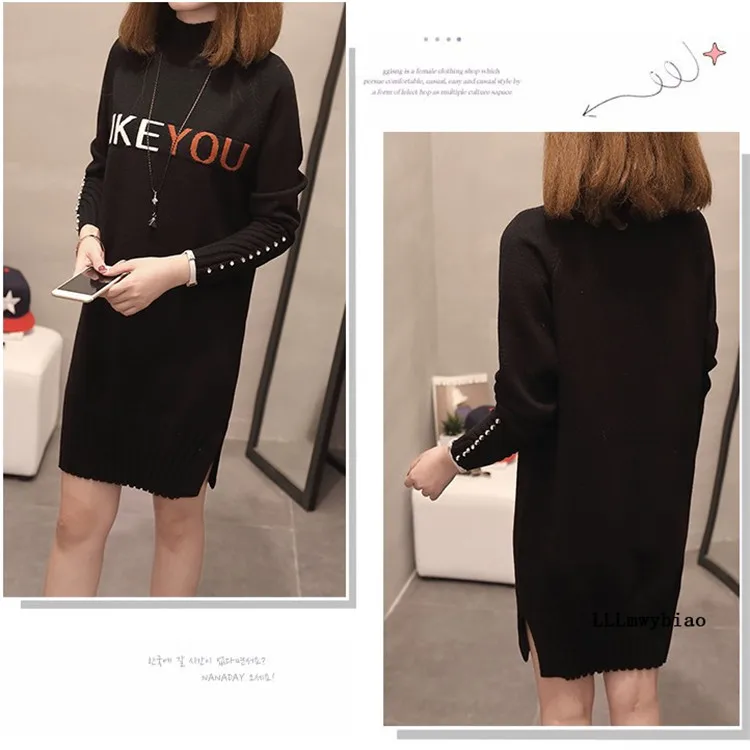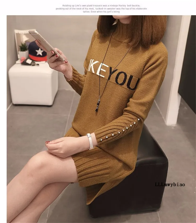 Женский вязаный свитер средней длины, с длинным рукавом и бусинами