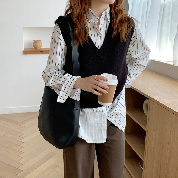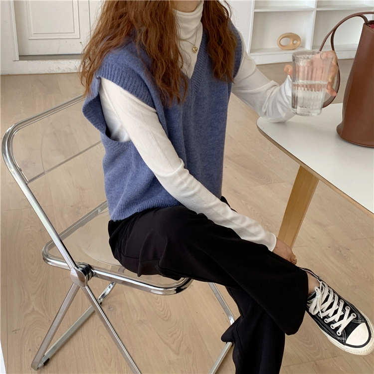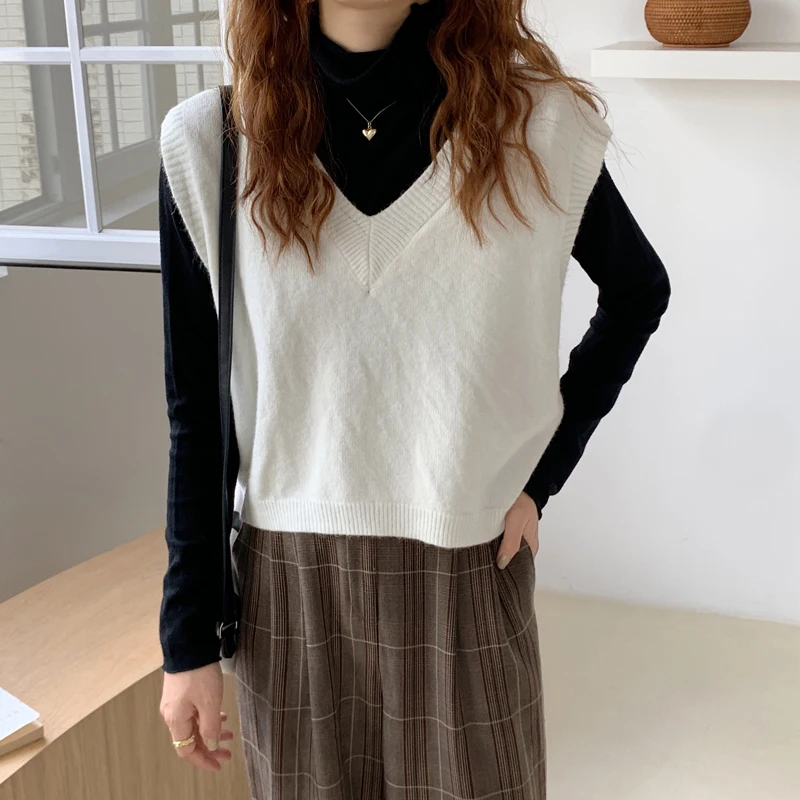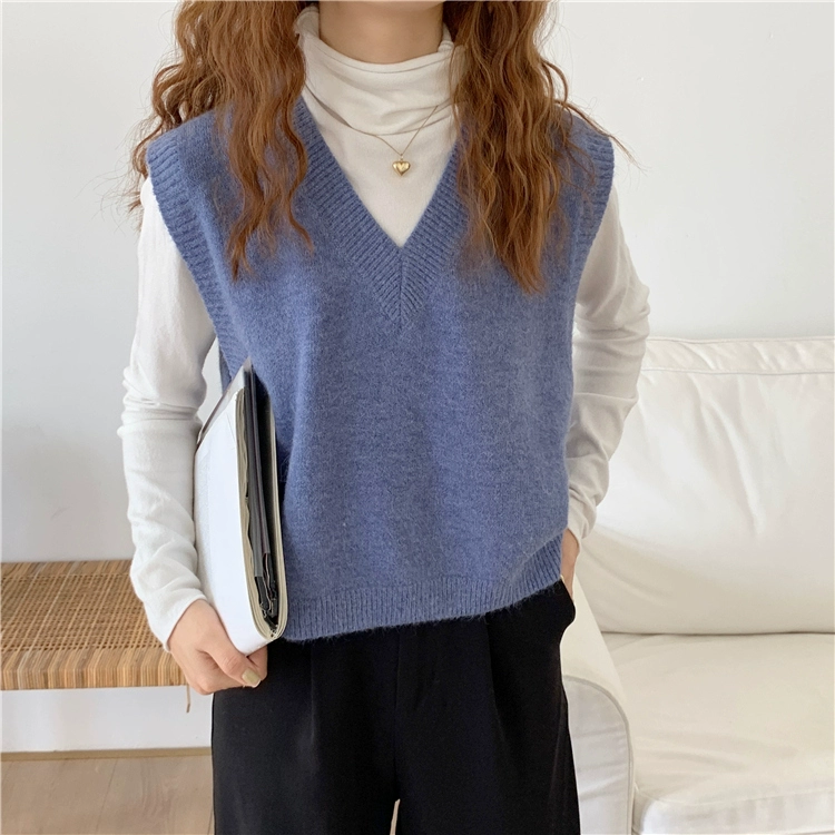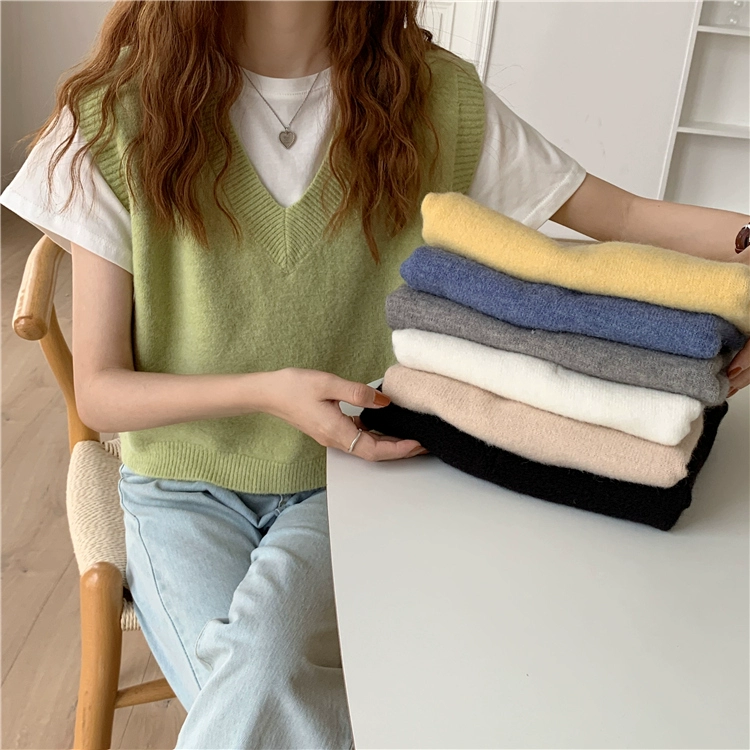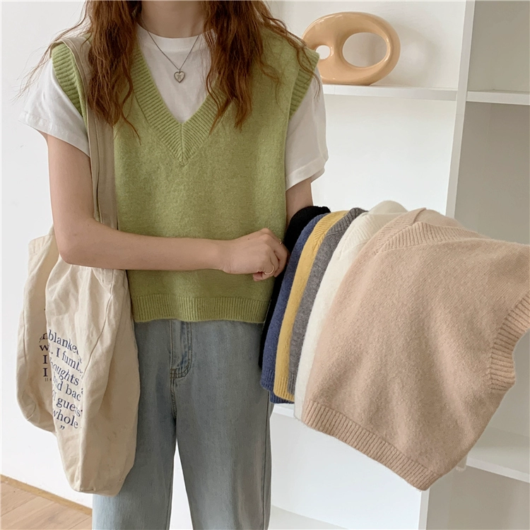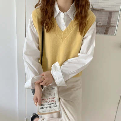 Женский трикотажный свитер, 7 цветов, свободный однотонный пуловер с V-образным вырезом в Корейском стиле преппи, 2020